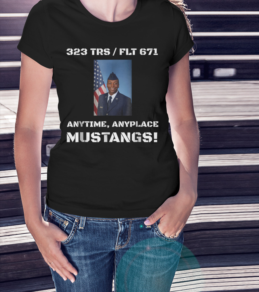 323 TRS / FLT 671 Anytime Anyplace Mustangs Airman Copeland Graduation Dad74 T-Shirt