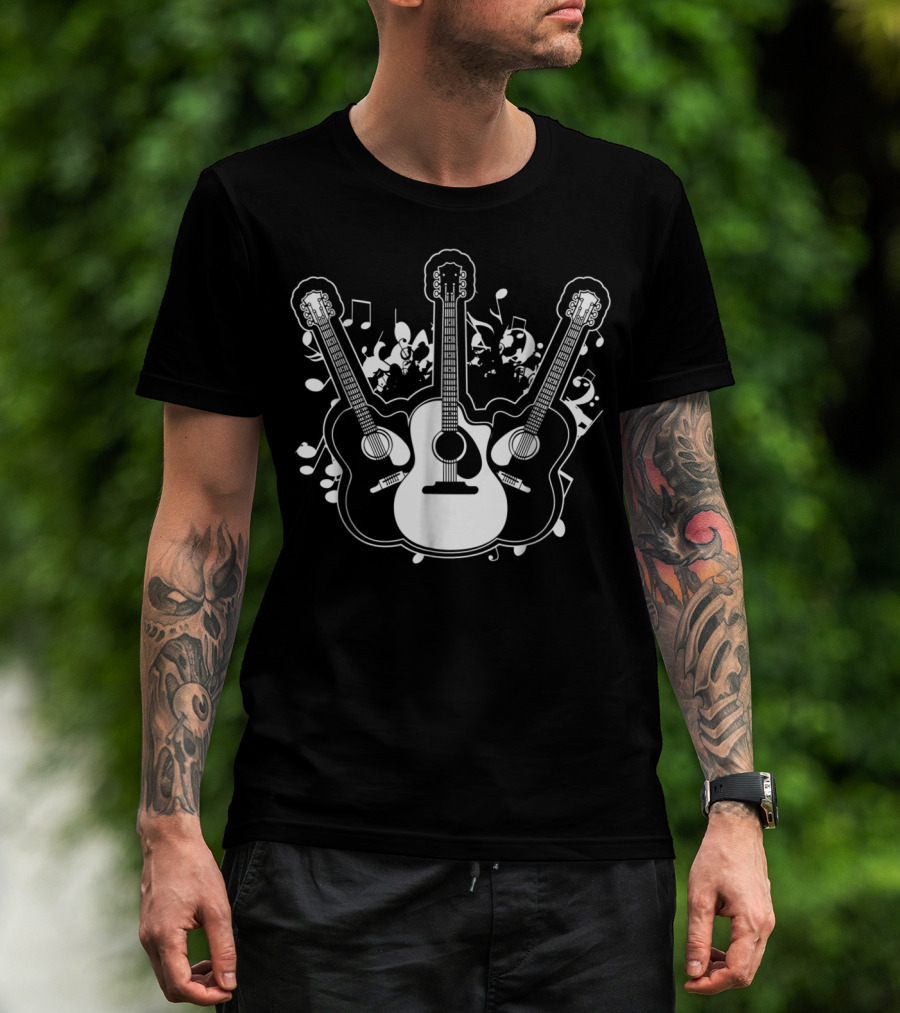 Acoustic Guitar Dad Rock Star Music Notes T-Shirt