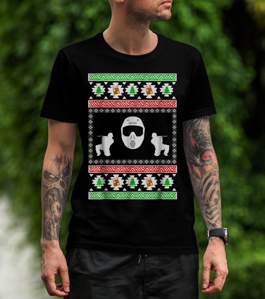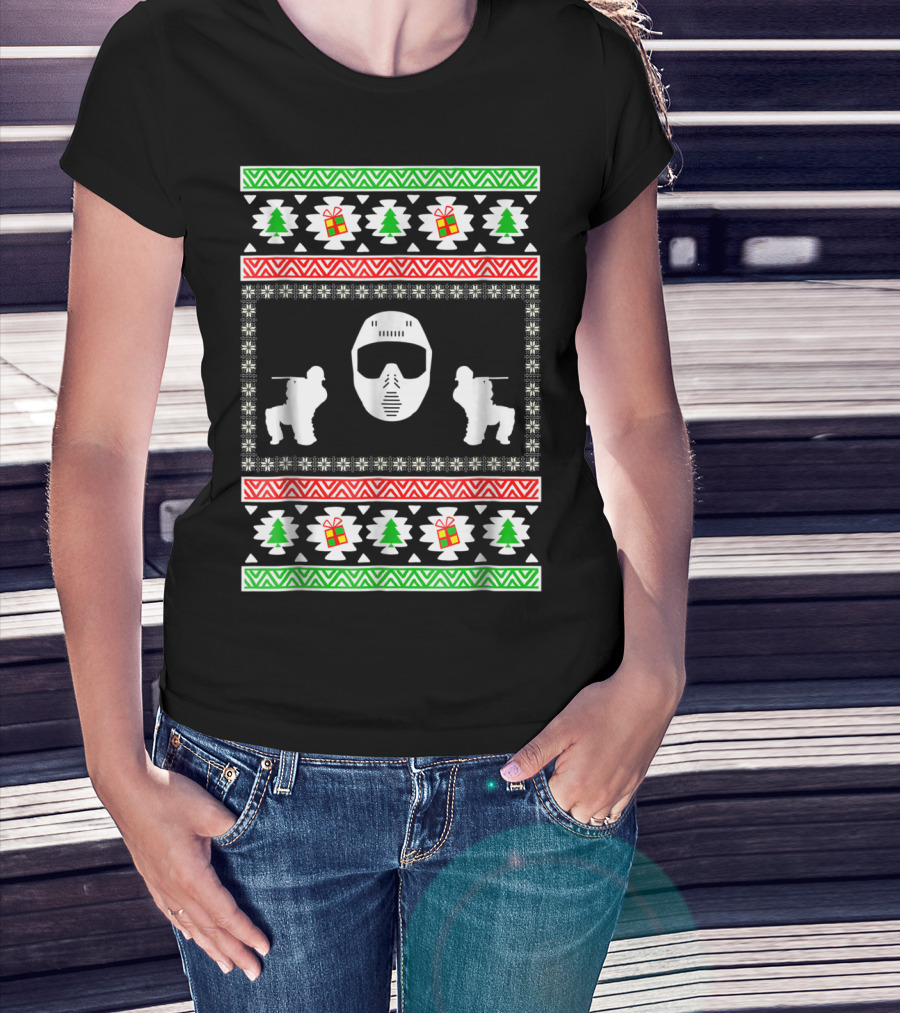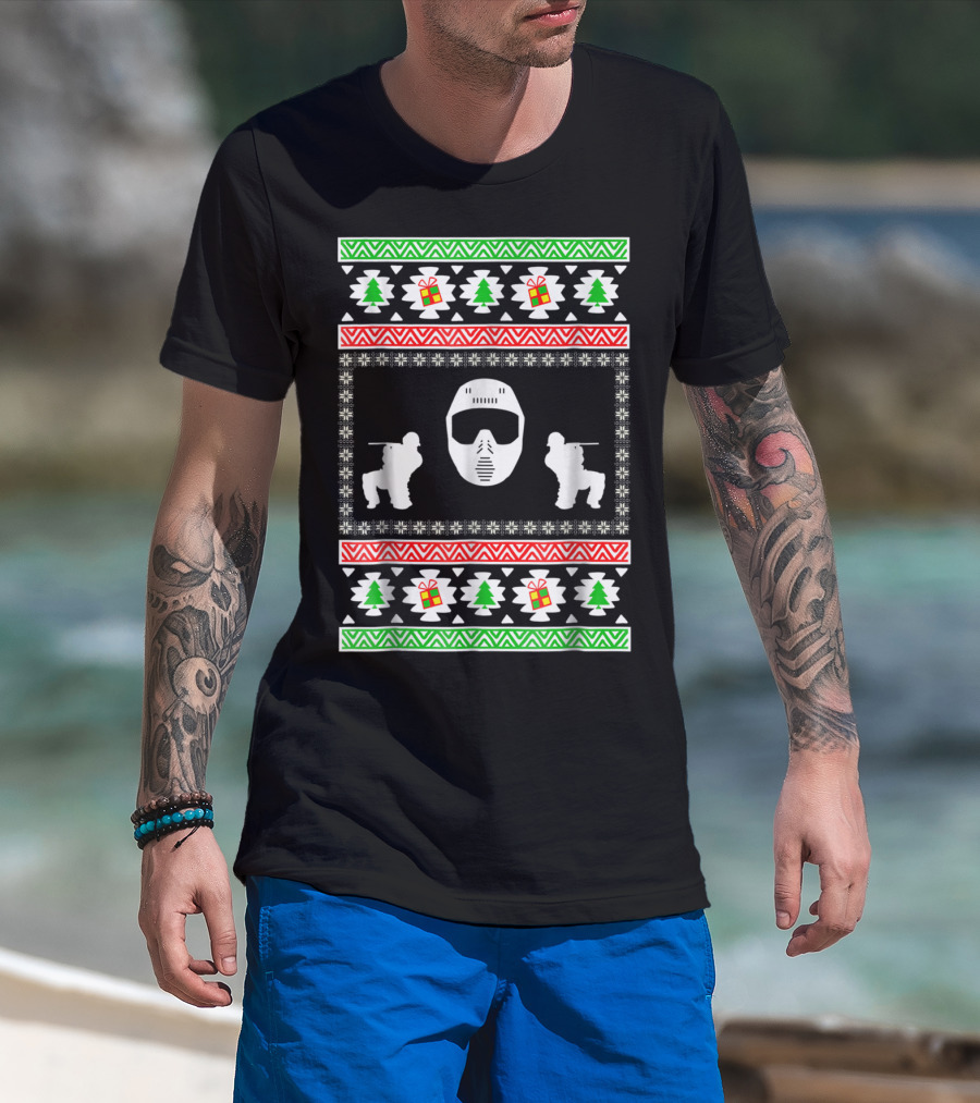 Airsoft Player Ugly Christmas Mask Trees Gifts Merry Holiday T-Shirt