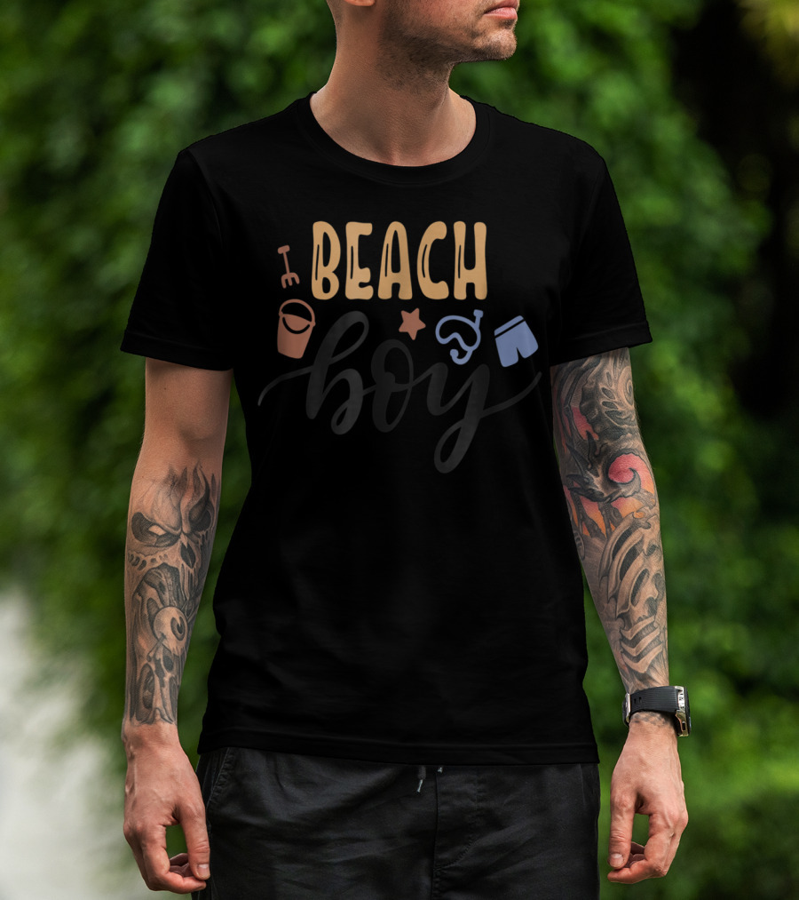 The Beach Boy Summer Vacation Kids Son Boys Dad Mom Bucket Snorkel Shorts T-shirt is designed for everyday wear and a consistent fit. Fabric is pre-shrunk ring-spun cotton with durable stitching. See the size chart below for exact measurements.