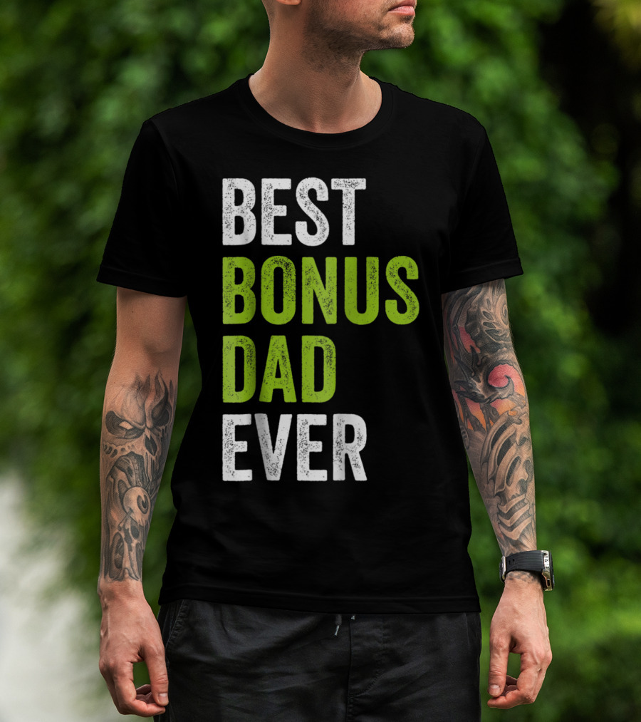 The Best Bonus Dad Ever T-shirt is designed for everyday wear and a consistent fit. Fabric is pre-shrunk ring-spun cotton with durable stitching. See the size chart below for exact measurements.
