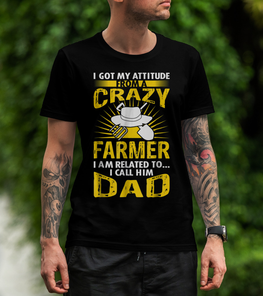 I Got My Attitude From A Crazy Farmer I Am Related To. I Call Him Dad T-Shirt