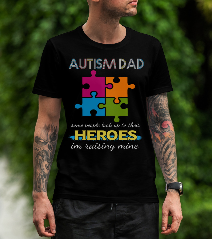 Autism Dad Some People Look Up To Their Heroes I'm Raising Mine Puzzle T-Shirt