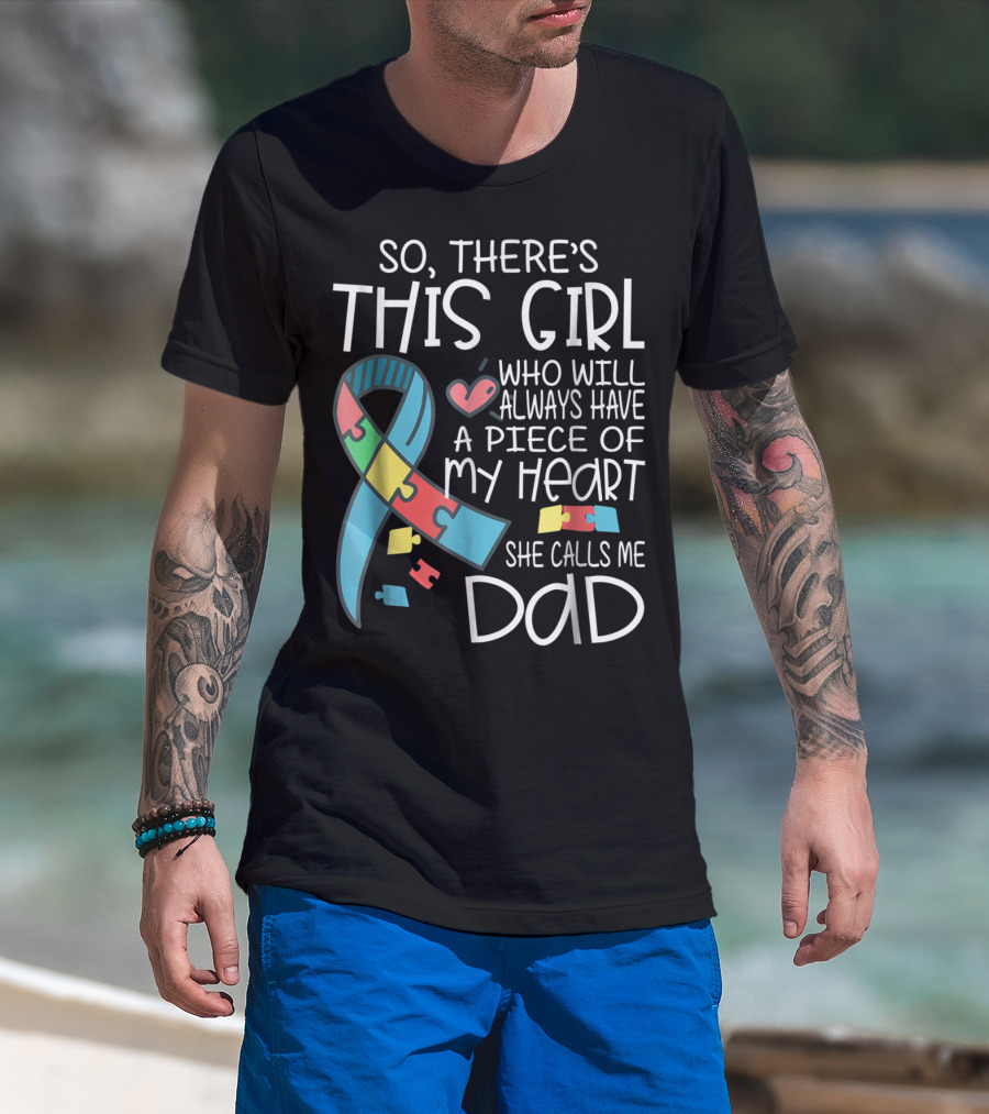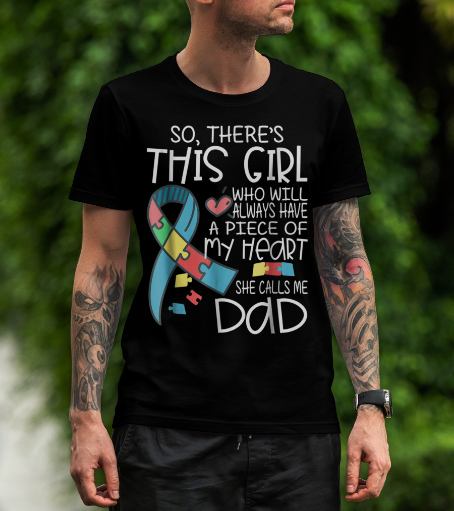 So There's This Girl Who Will Always Have A Piece Of My Heart She Calls Me Dad Autism Awareness T-Shirt