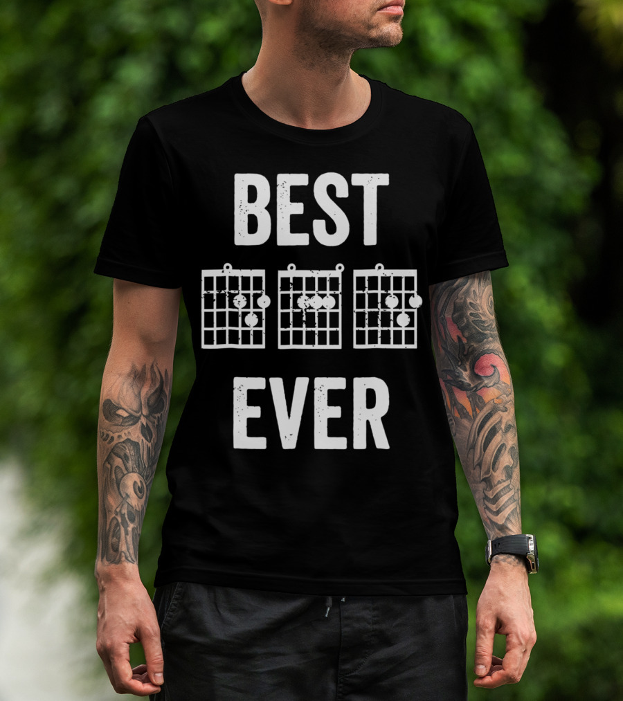 The Best Dad Ever Music Chords Bold Condensed73 Guitar Diagrams T-shirt is designed for everyday wear and a consistent fit. Fabric is pre-shrunk ring-spun cotton with durable stitching. See the size chart below for exact measurements.
