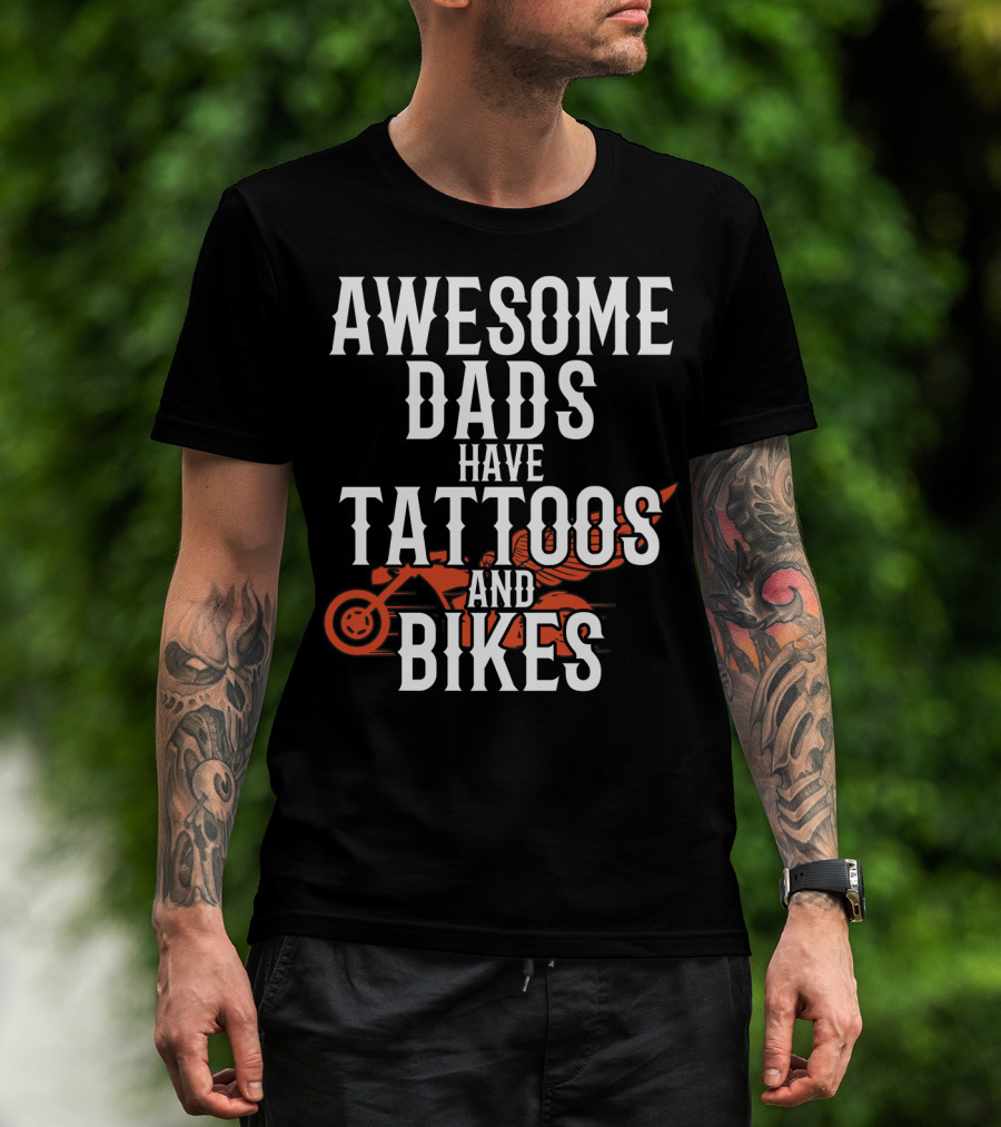 Awesome Dads Have Tattoos And Bikes For Father Husband Christmas T-Shirt