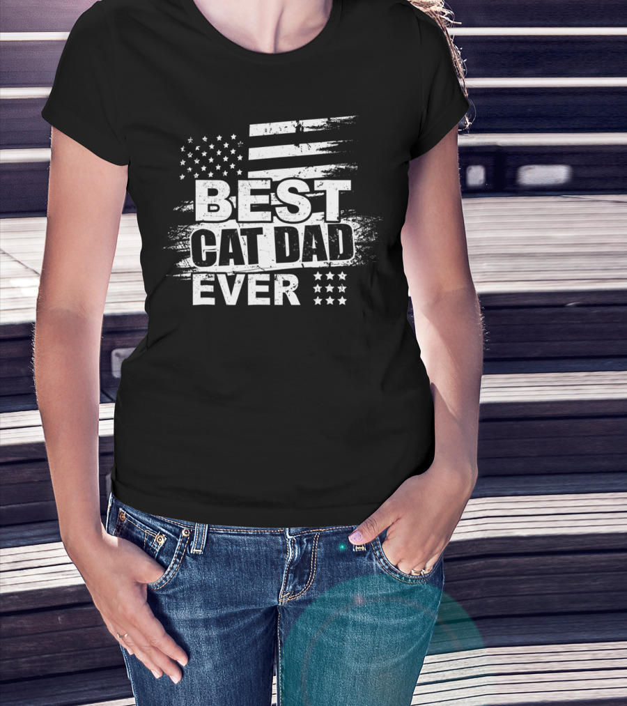 Best Cat Dad Ever American Flag Stars Stripes T-Shirt