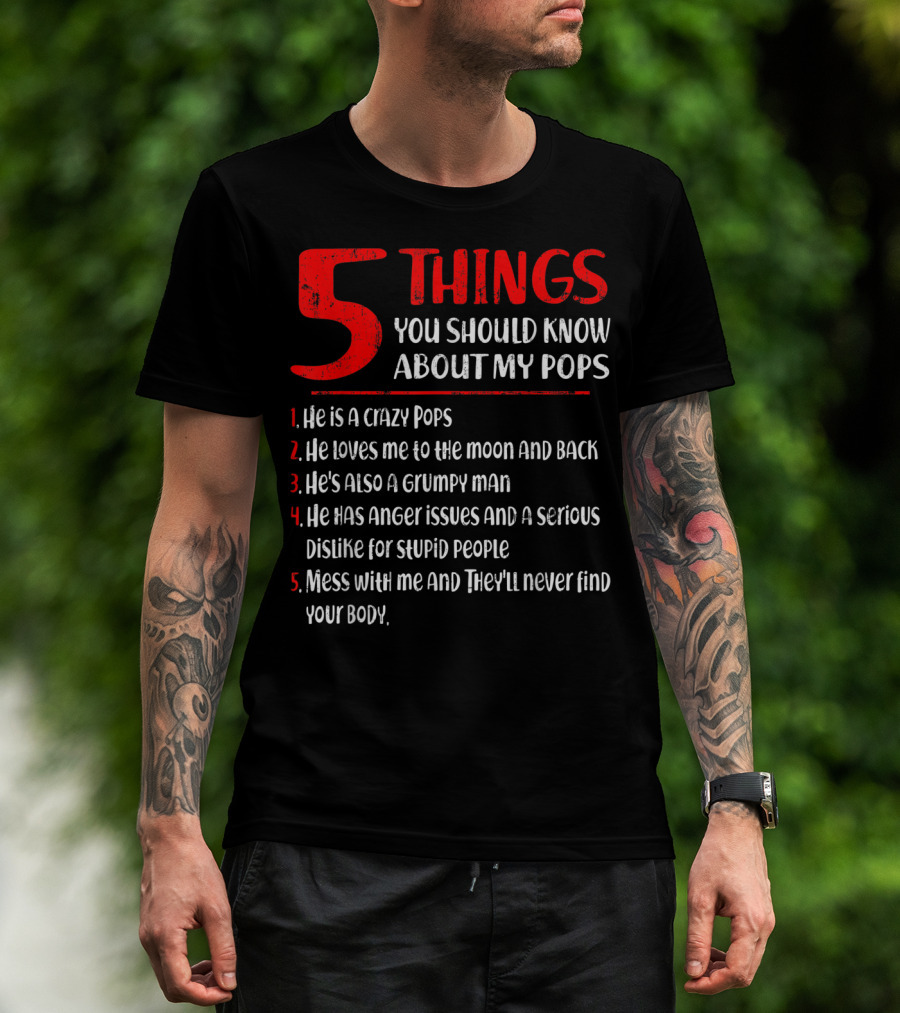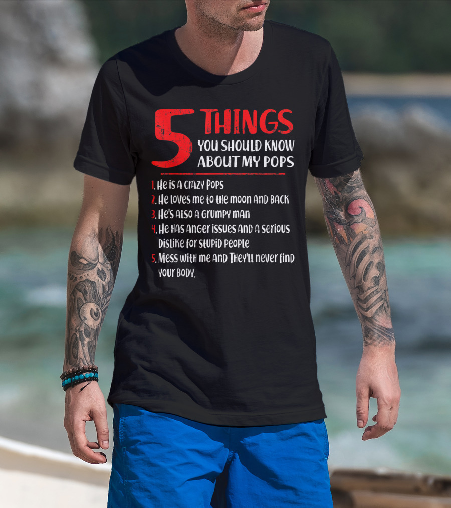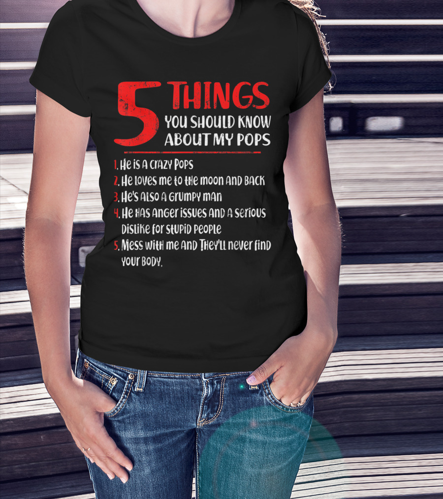 5 Things You Should Know About My Crazy Pops Loves Me To The Moon Grumpy Man Anger Issues Dislike Stupid People Mess With Me They'll Never Find Body T-Shirt