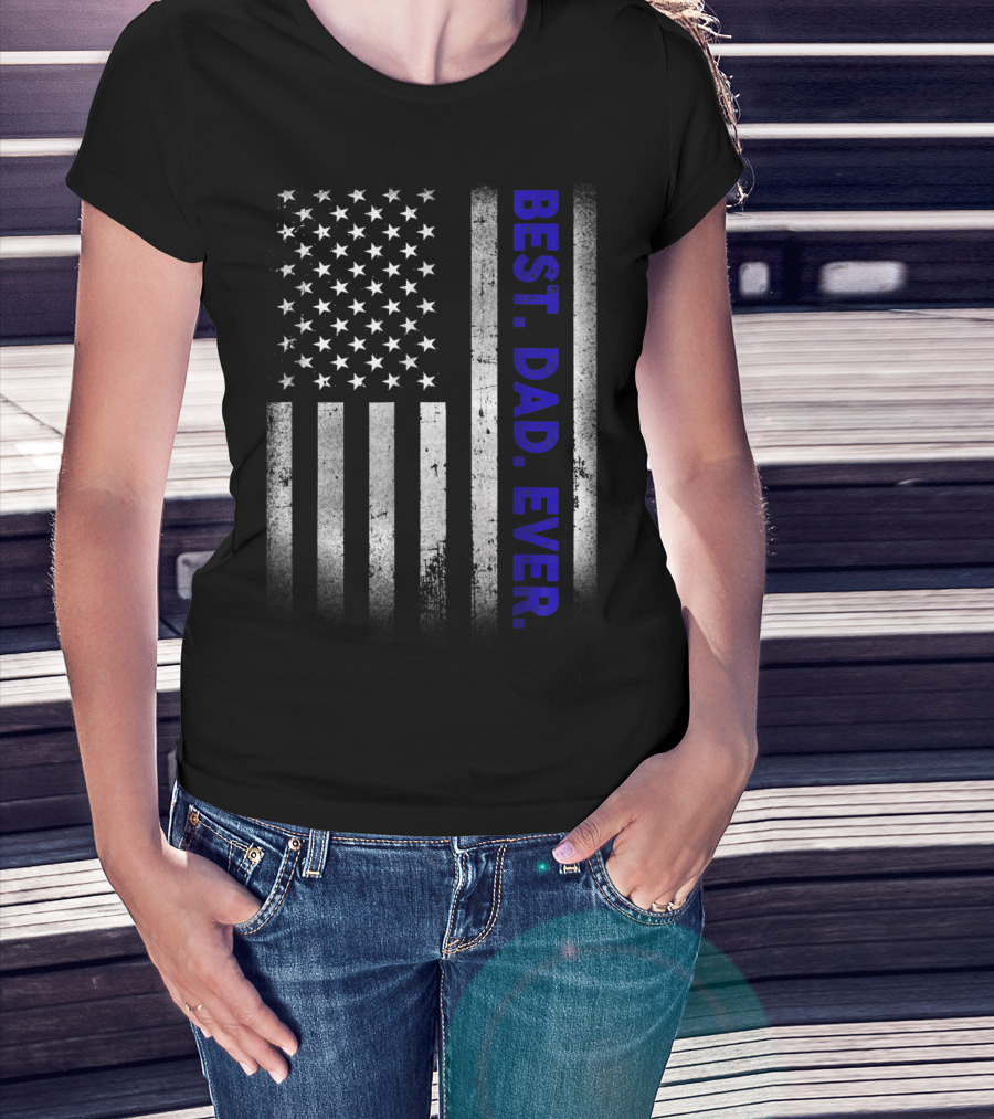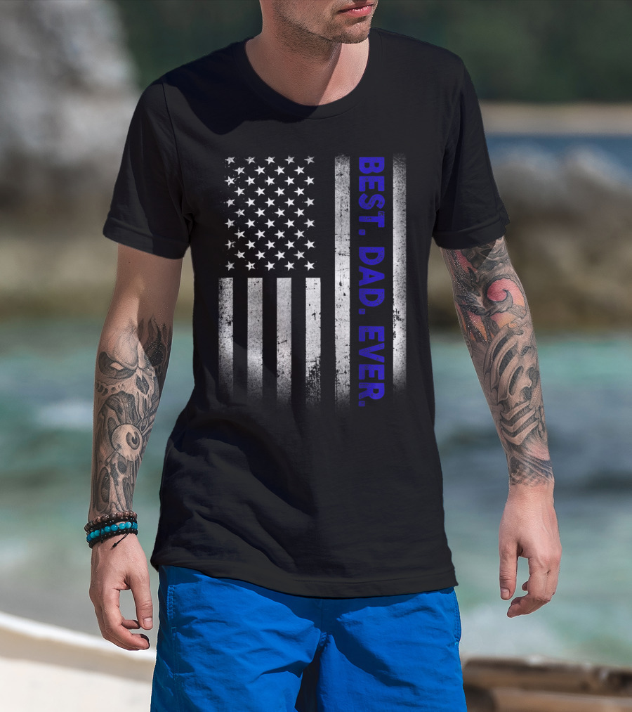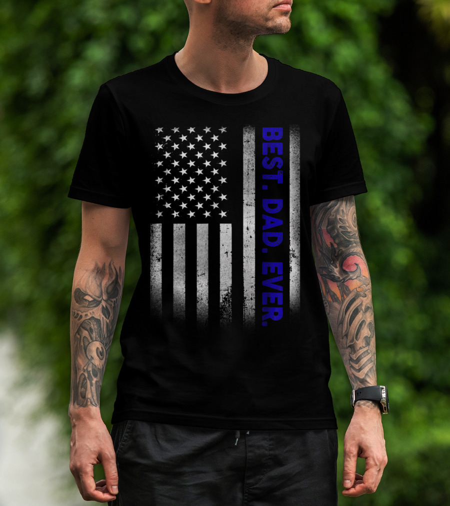 Best Dad Ever American Flag Thin Blue Line Police 14 T-Shirt