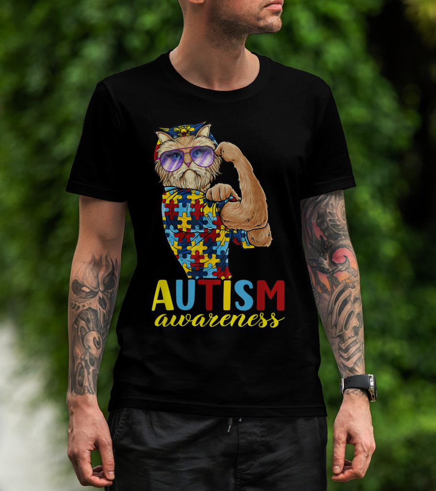 Autism Awareness Unbreakable Cat With Puzzle T-Shirt