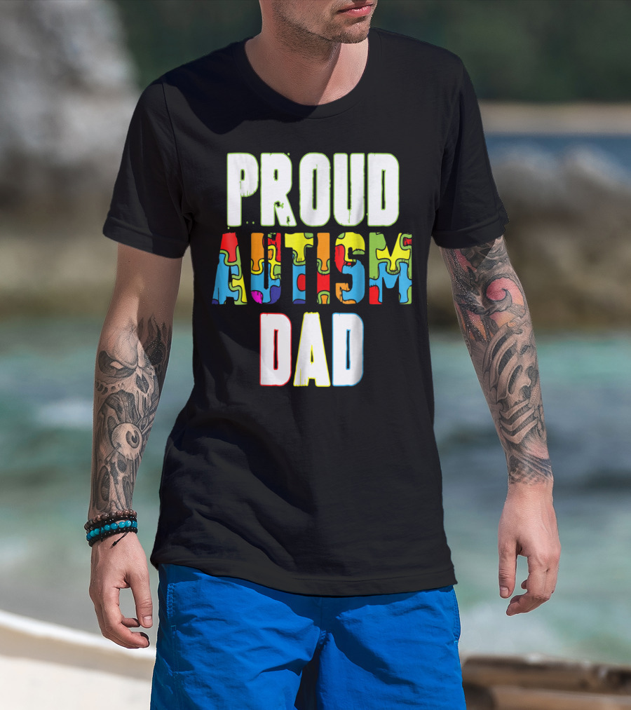 PROUD AUTISM DAD Autism Awareness Product T-Shirt