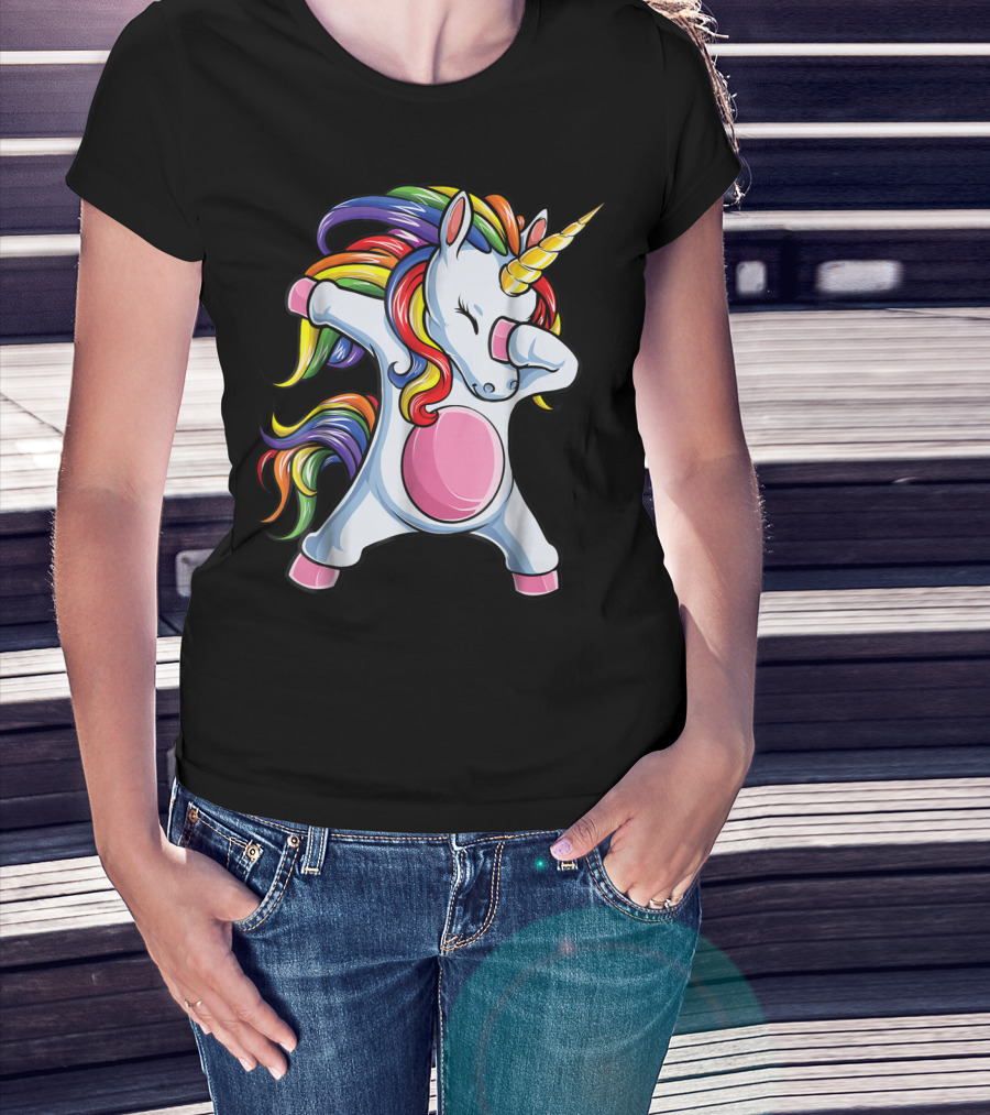 Dabbing Unicorn Kids Boys Girls Rainbow Colors T-Shirt
