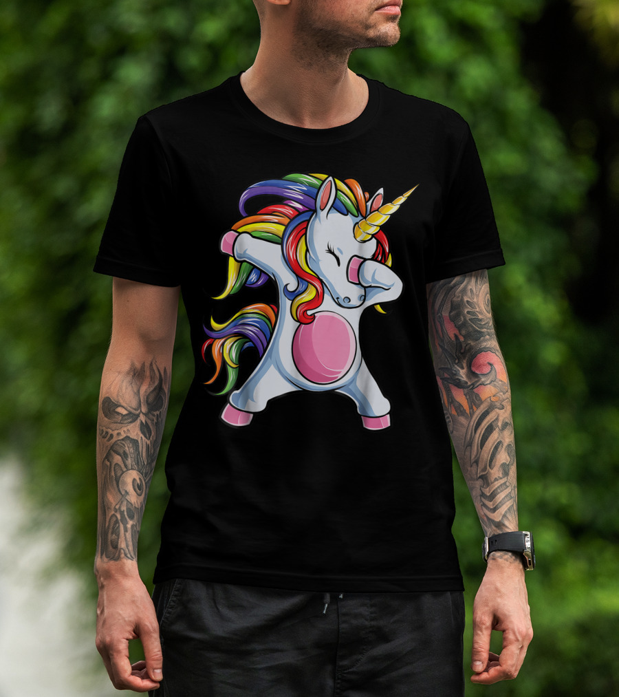 The Dabbing Unicorn Kids Boys Girls Rainbow Colors T-shirt is designed for everyday wear and a consistent fit. Fabric is pre-shrunk ring-spun cotton with durable stitching. See the size chart below for exact measurements.