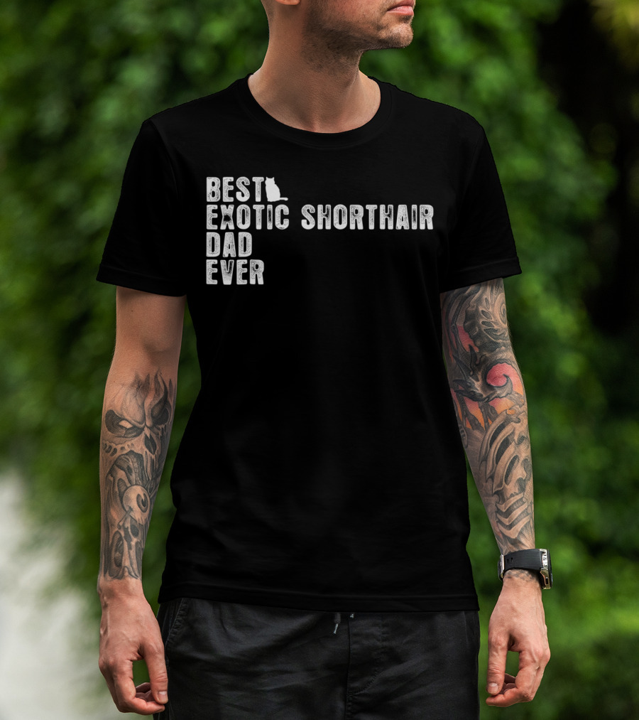 The Best Exotic Shorthair Cat Dad Ever T-shirt is designed for everyday wear and a consistent fit. Fabric is pre-shrunk ring-spun cotton with durable stitching. See the size chart below for exact measurements.