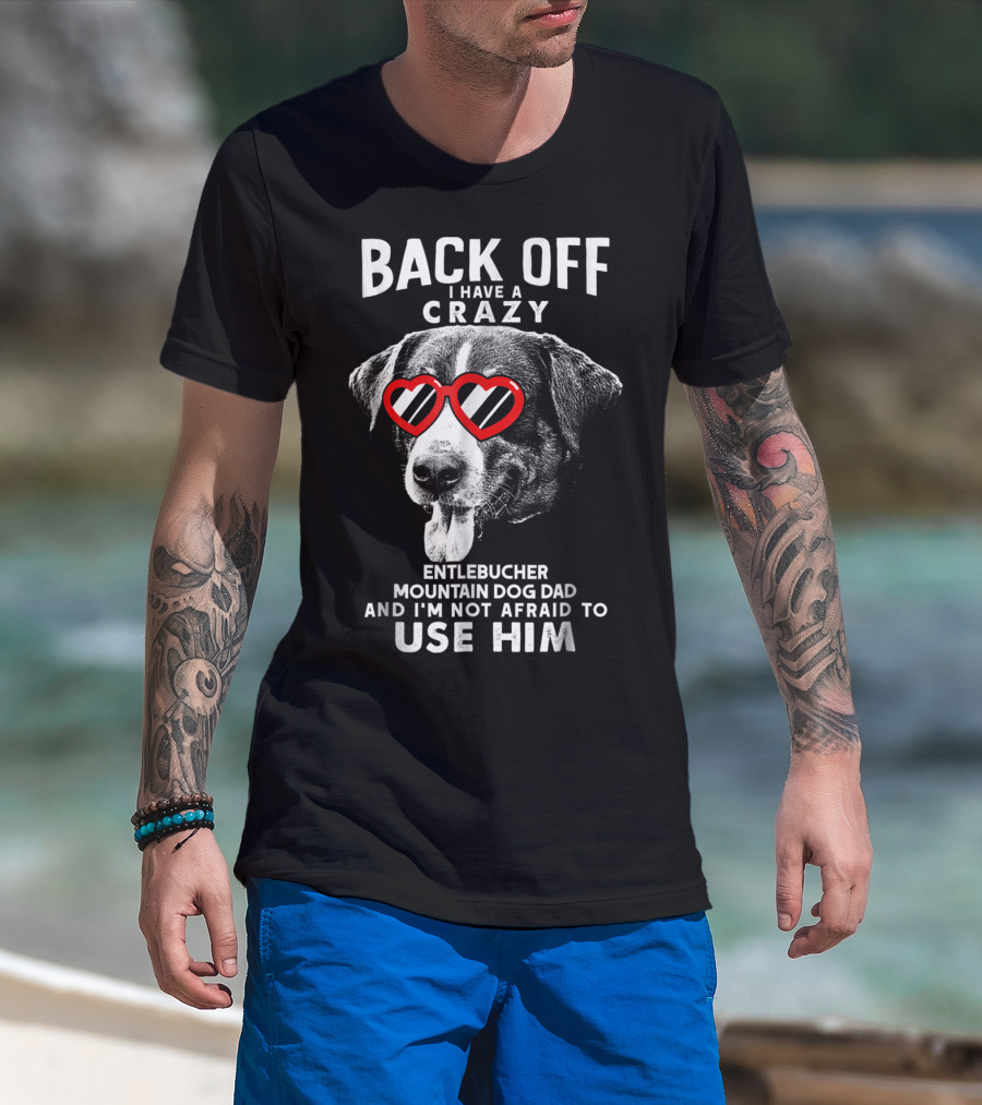 Back Off I Have A Crazy Entlebucher Mountain Dog Dad And I'm Not Afraid To Use Him T-Shirt