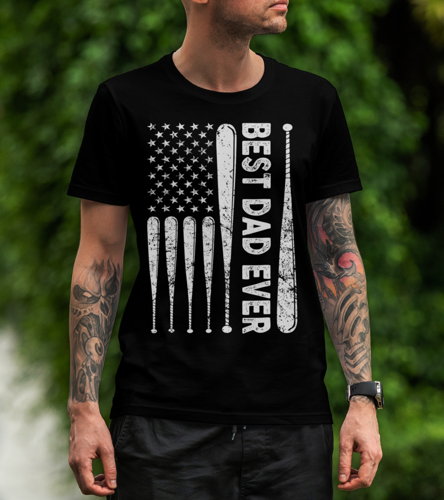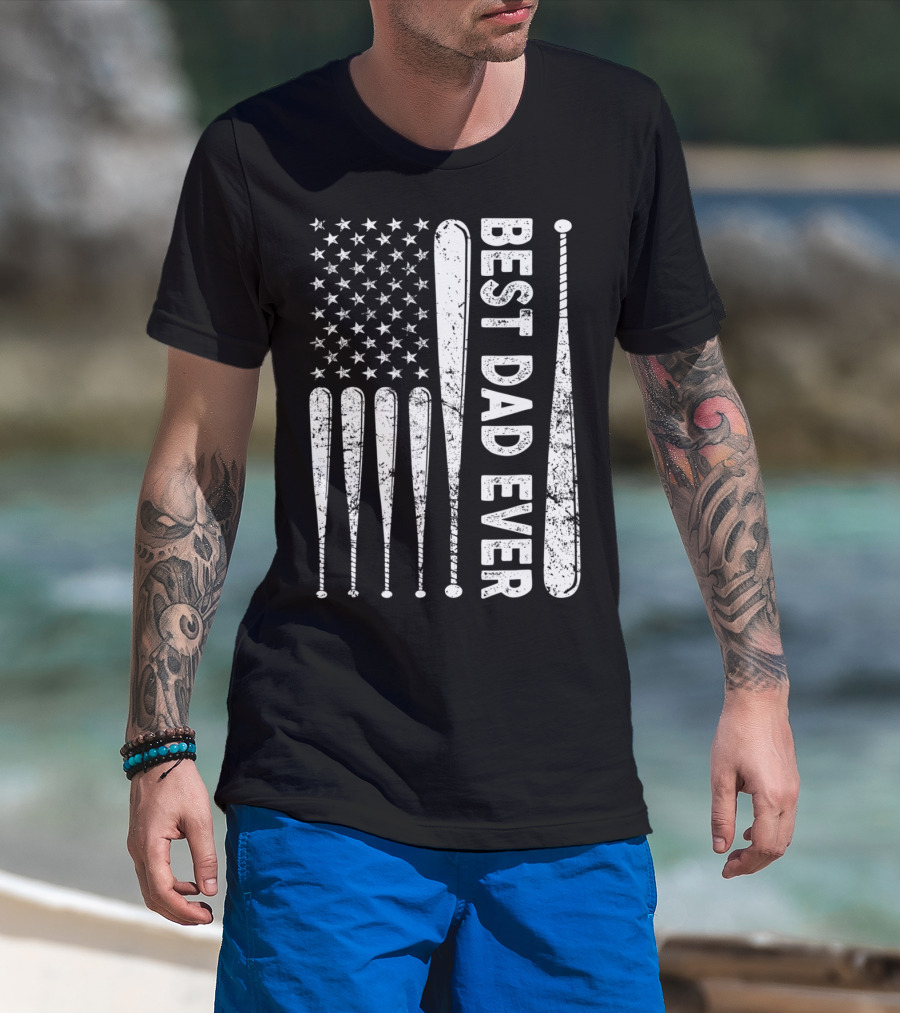 Best Dad Ever American Flag Baseball SoftballUSA T-Shirt