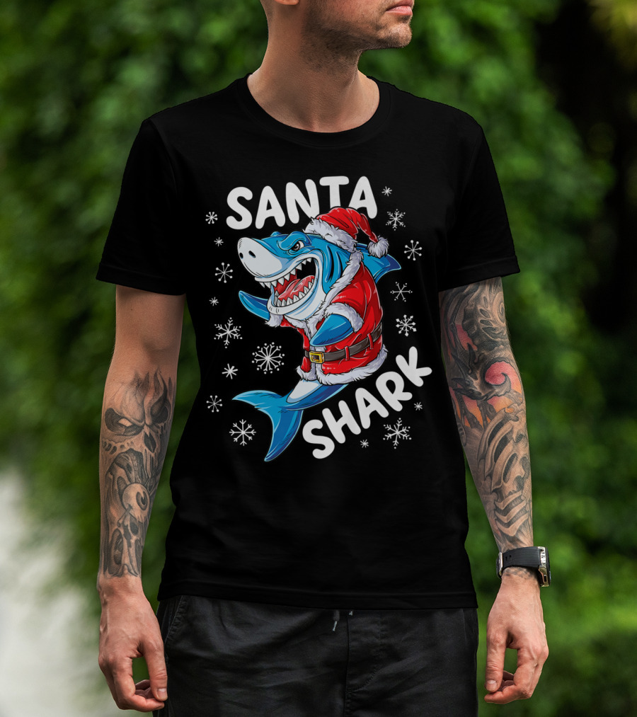 Santa Shark Holiday Cheer Snowflakes T-Shirt