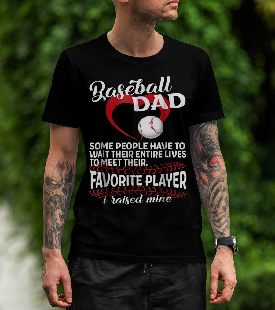 The Baseball Dad Raised Mine Some People Have to Wait Their Entire Lives to Meet Their Favorite Player T-shirt is designed for everyday wear and a consistent fit. Fabric is pre-shrunk ring-spun cotton with durable stitching. See the size chart below for exact measurements.