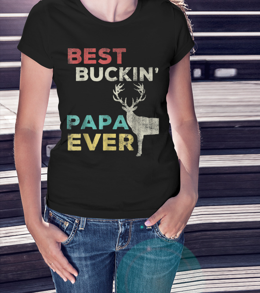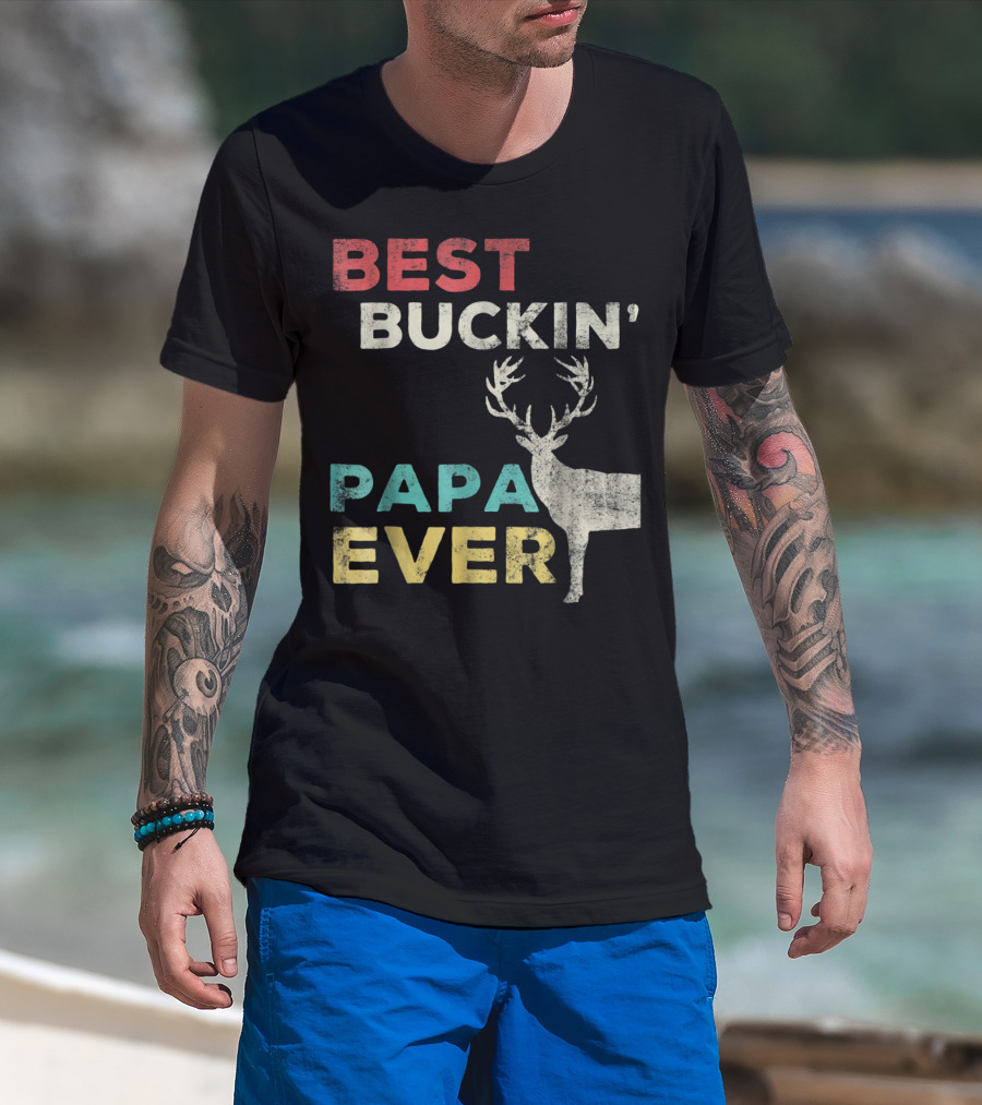 Best Buckin' Papa Ever Deer Hunting Bucking Father With Antlered Buck T-Shirt