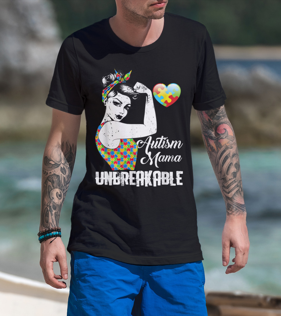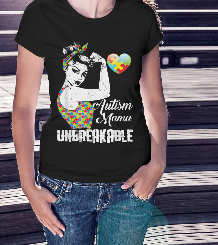 Autism Mama Unbreakable Love Puzzle Heart Awareness T-Shirt