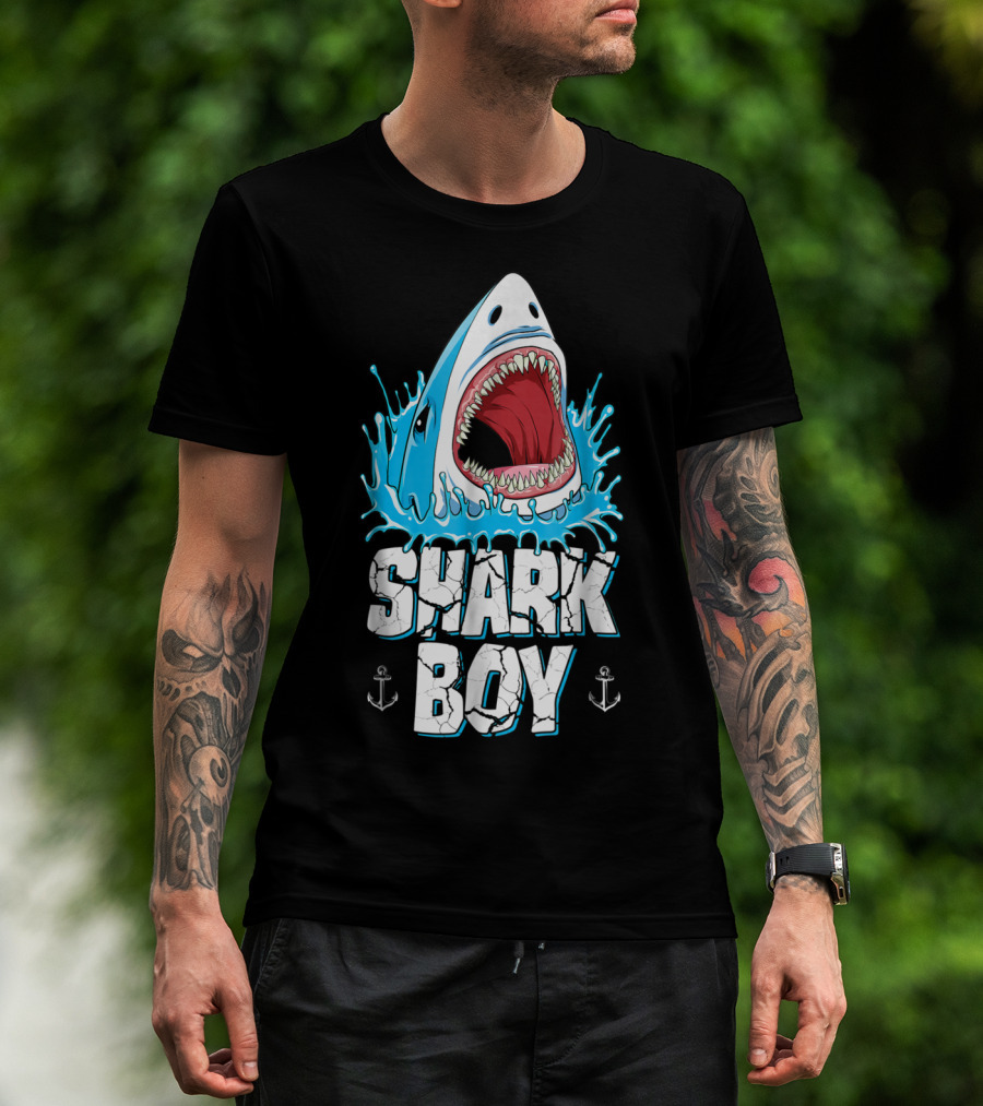 SHARK BOY Fierce Shark With Splashes And Anchors T-Shirt
