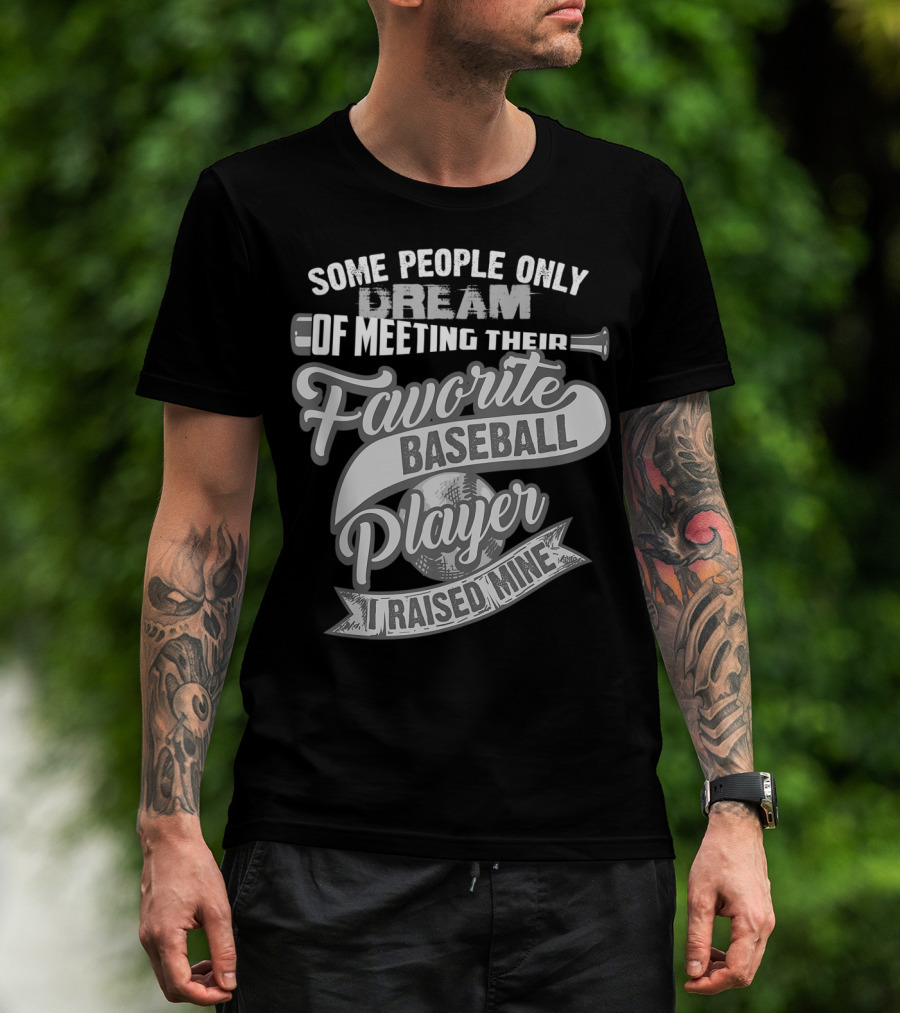 The Some People Only Dream of Meeting Their Favorite Baseball Player I Raised Mine T-shirt is designed for everyday wear and a consistent fit. Fabric is pre-shrunk ring-spun cotton with durable stitching. See the size chart below for exact measurements.