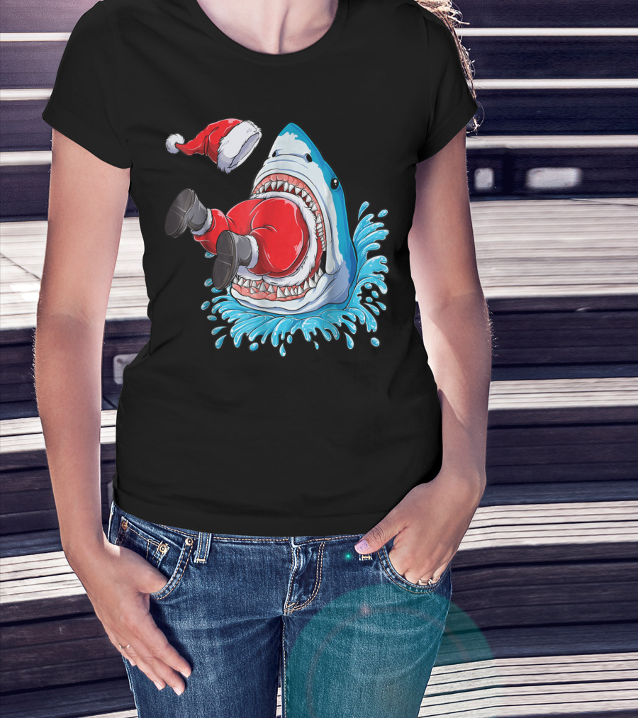 Merry Sharkmas Santa Claus Shark Christmas Holiday Fun T-Shirt