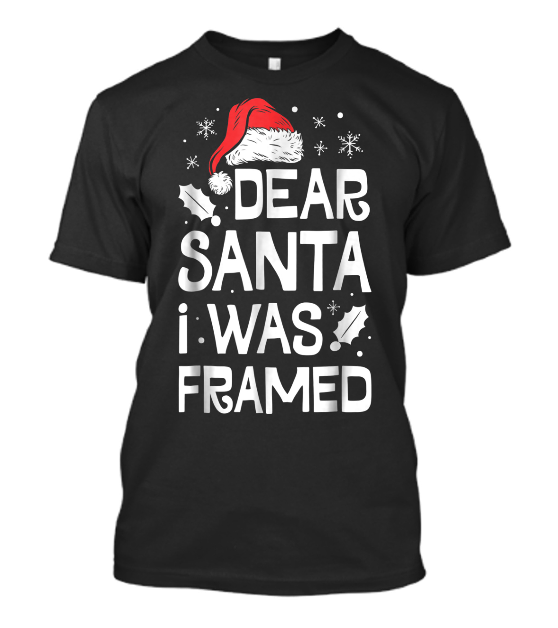 Dear Santa I Was Framed Christmas Baby Santa Hat Snowflakes T-Shirt