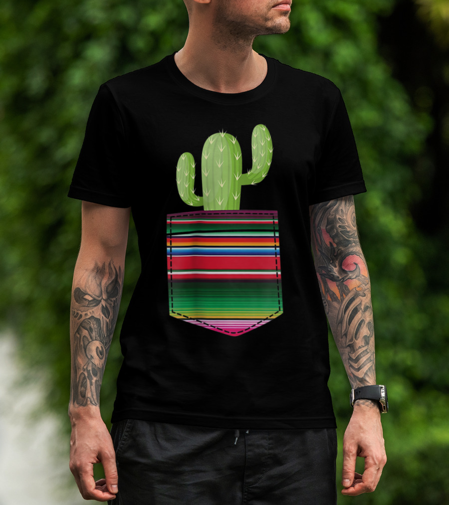 Cactus In Serape Pocket Mexican Fiesta Party T-Shirt