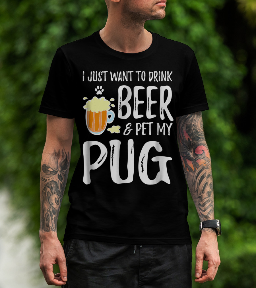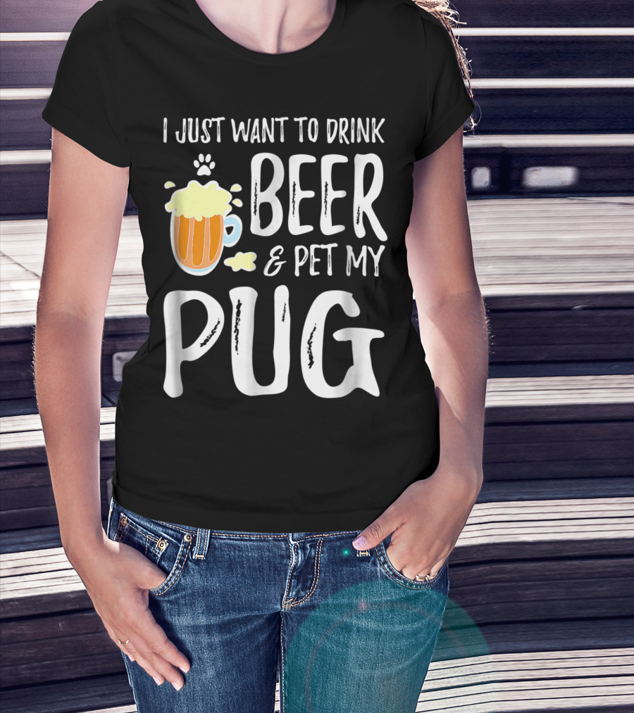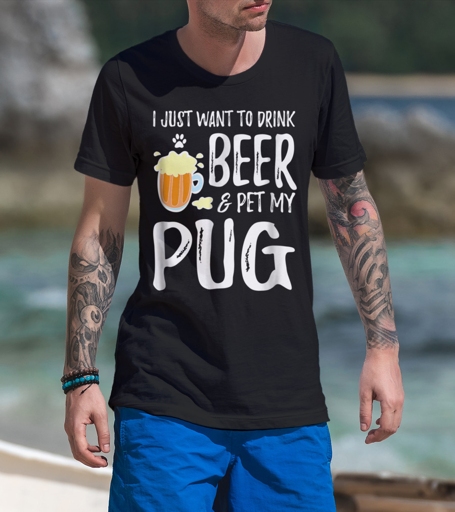 I Just Want To Drink Beer And Pet My Pug Dog Mom Or Dog Dad Idea86 T-Shirt