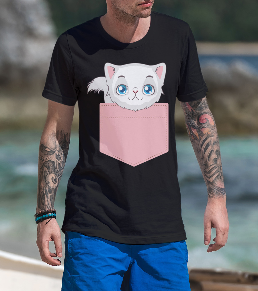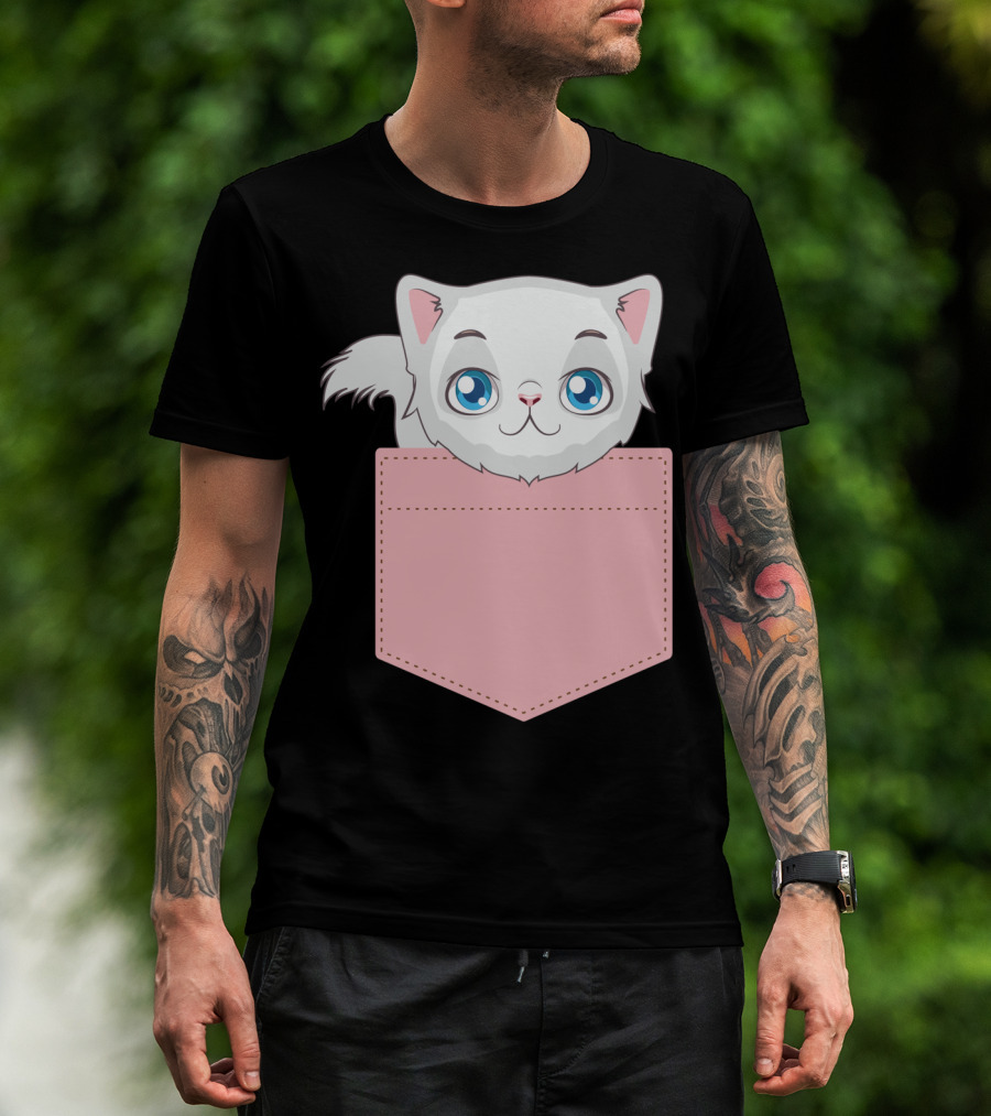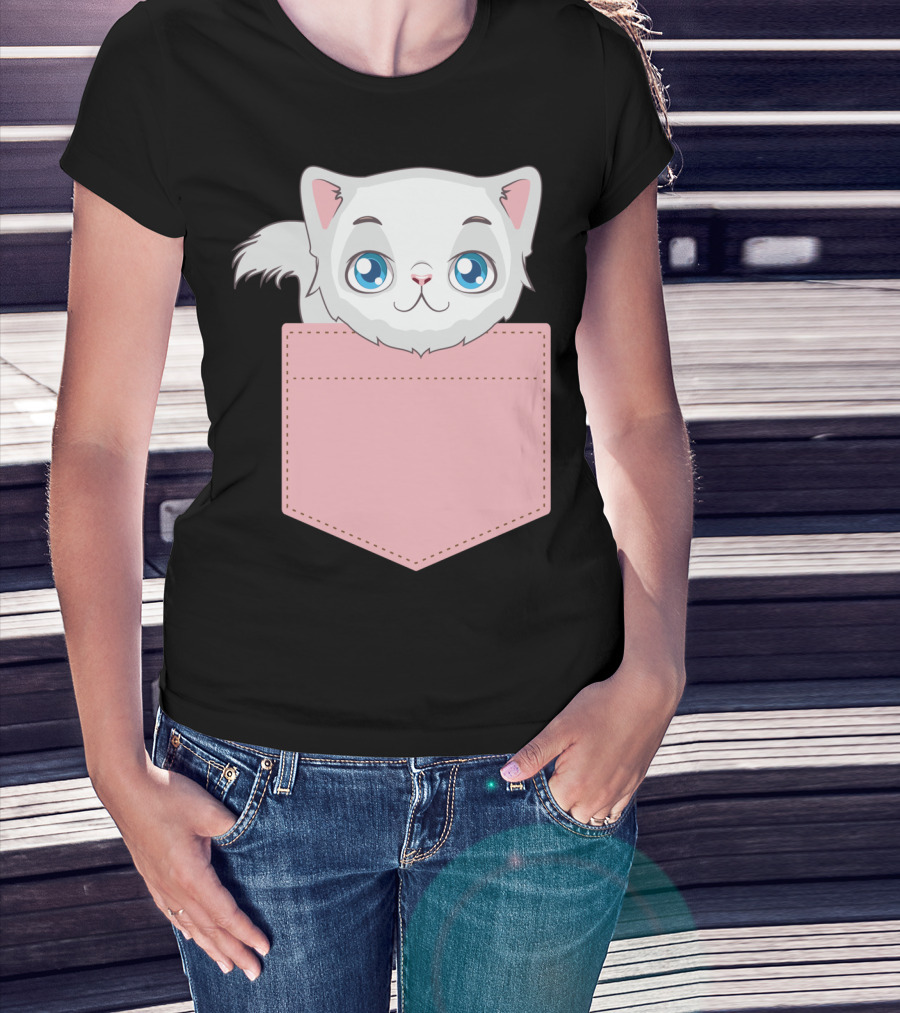 Cat In Pocket For Cat Mom Cat Dad And Cat Lovers Cute Kitty T-Shirt