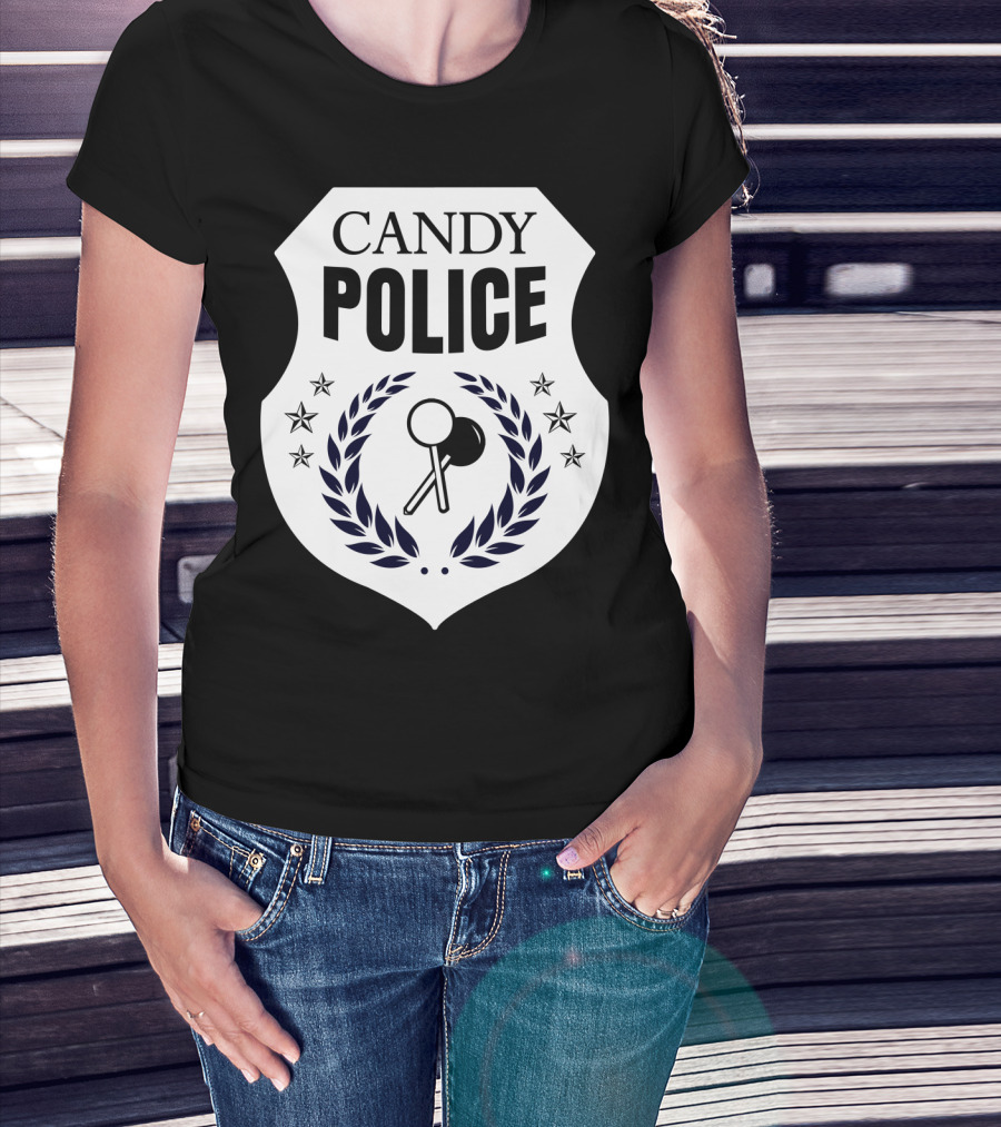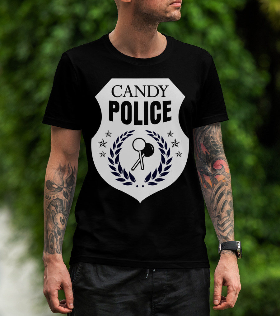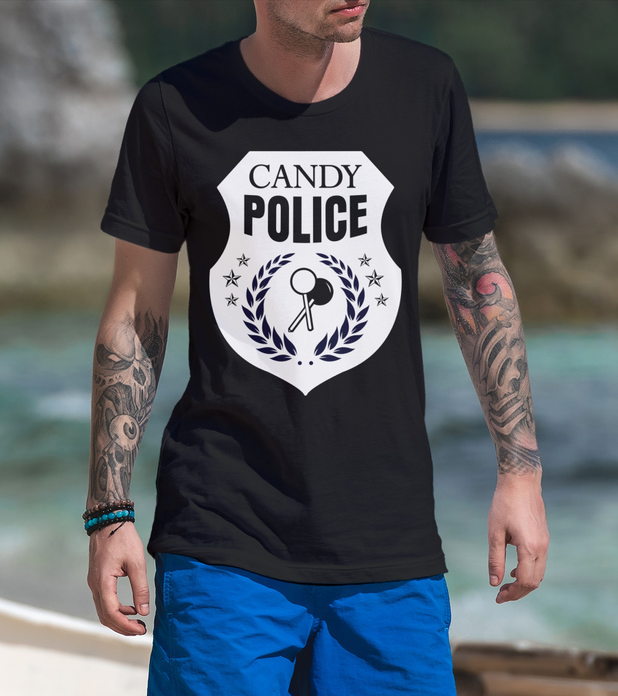 Candy Police Badge Funny Halloween Saying Parent Tee28 T-Shirt