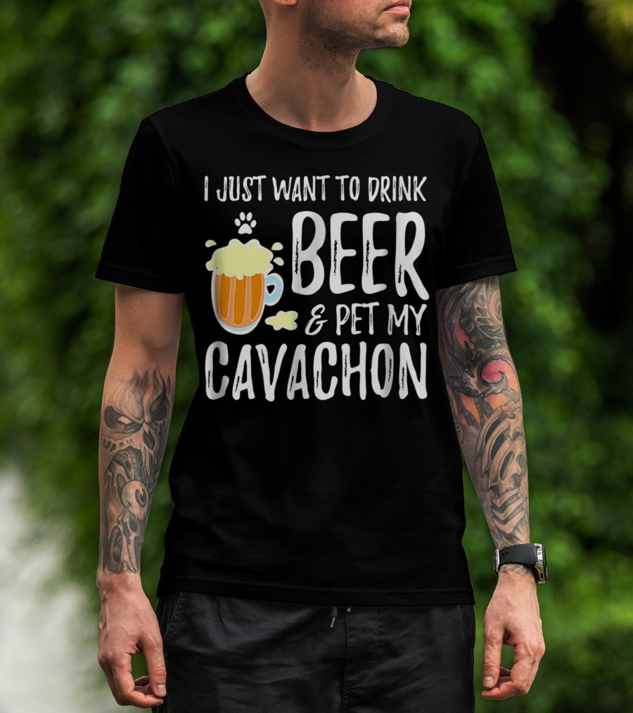 I Just Want To Drink Beer And Pet My Cavachon Dog Mom Or Dog Dad T-Shirt