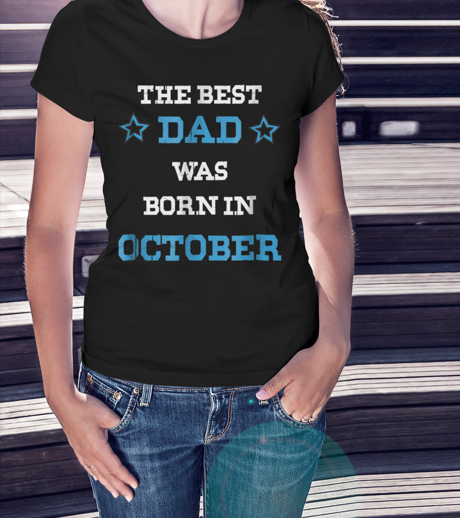 The Best Dad Was Born In October Funny Parents Star T-Shirt