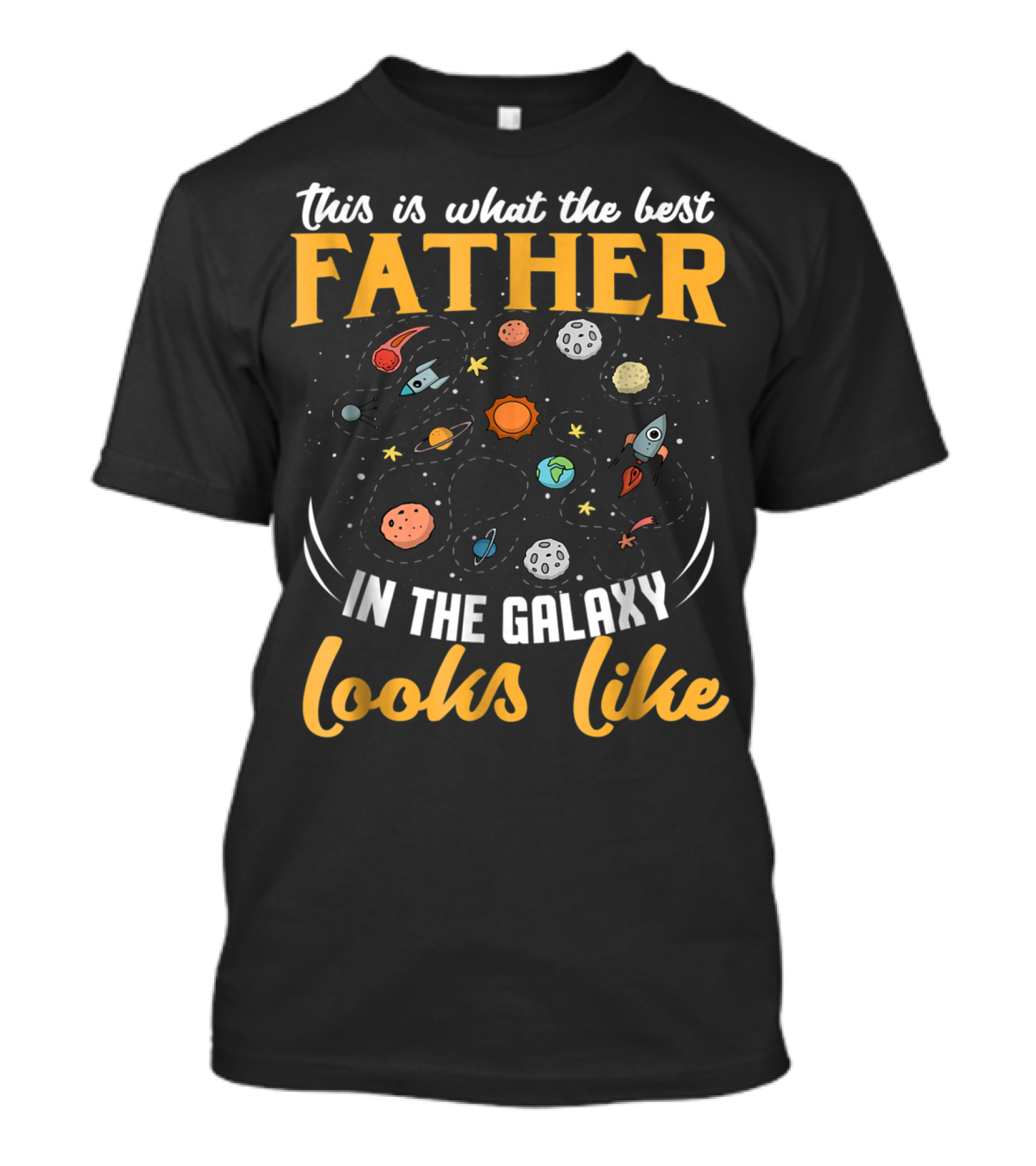 The This Is What the Best Father in the Galaxy Looks Like T-shirt is designed for everyday wear and a consistent fit. Fabric is pre-shrunk ring-spun cotton with durable stitching. See the size chart below for exact measurements.