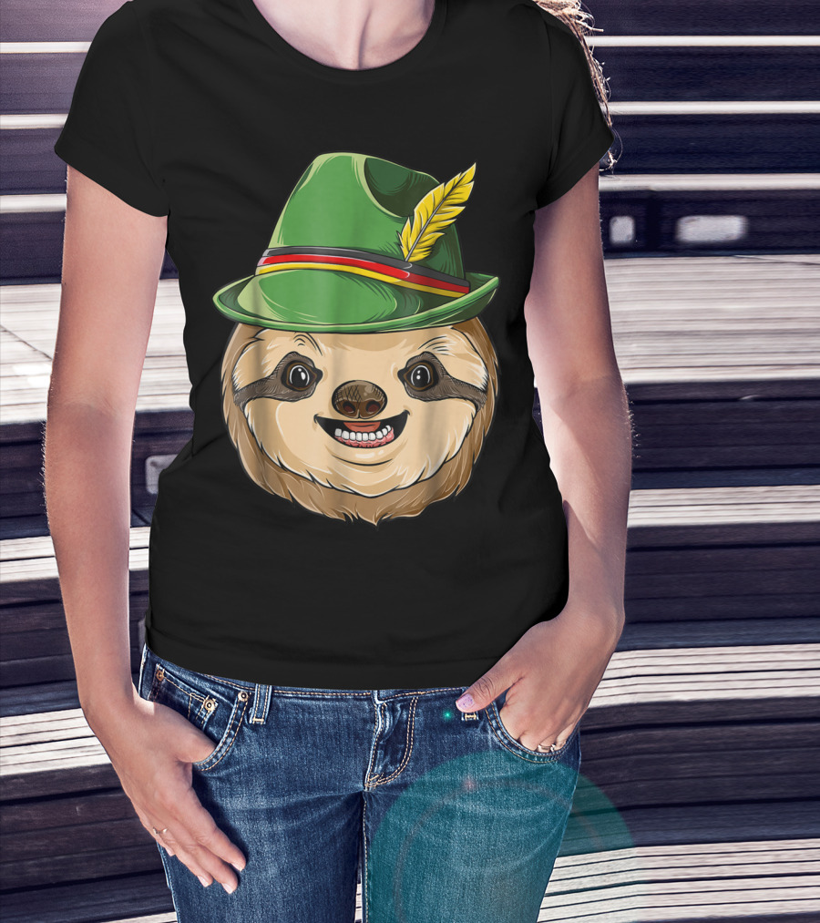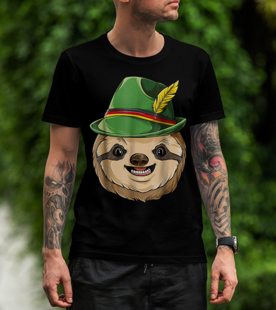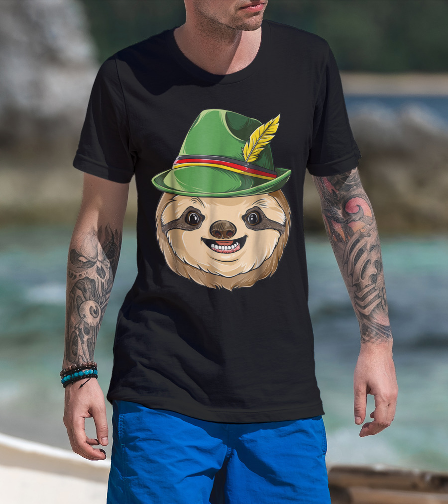 Sloth Oktoberfest Lederhosen Hat With Feather T-Shirt