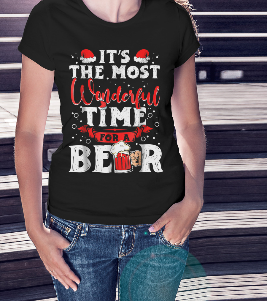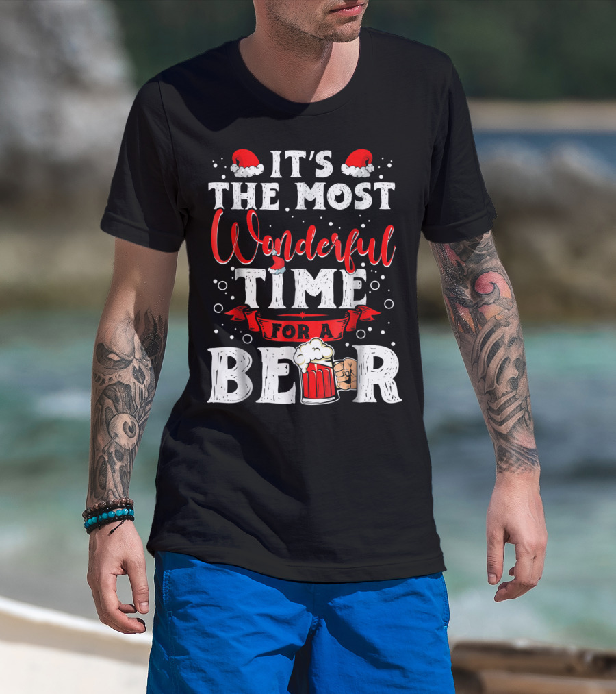 It's The Most Wonderful Time For A Beer Santa Hat Bubbles Cheers T-Shirt