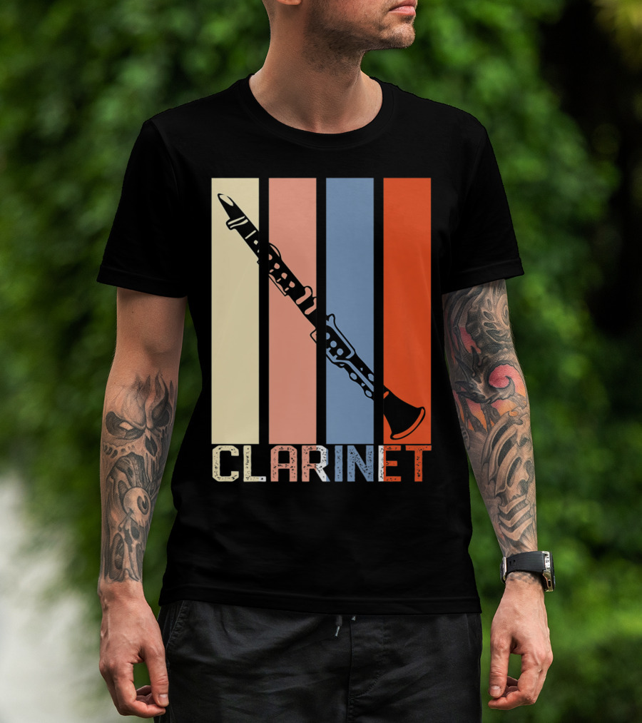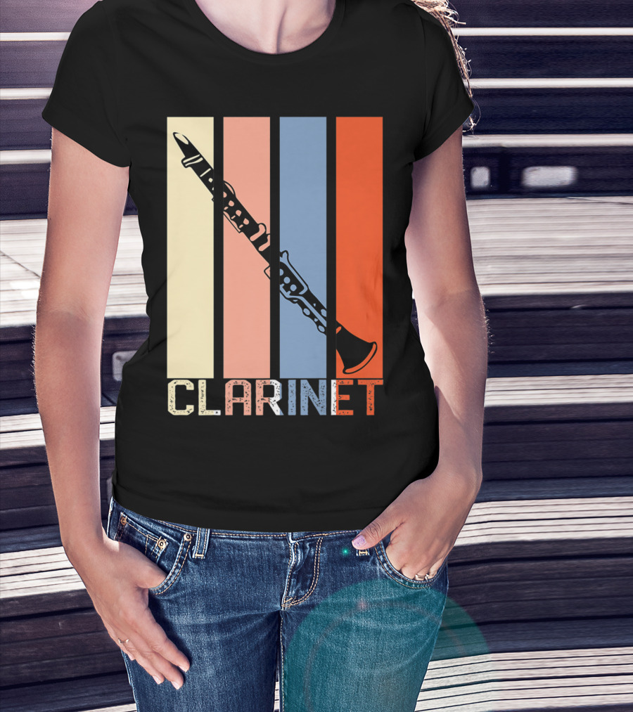 Clarinet Marching Band Dad High School Retro Instrument Stripes T-Shirt
