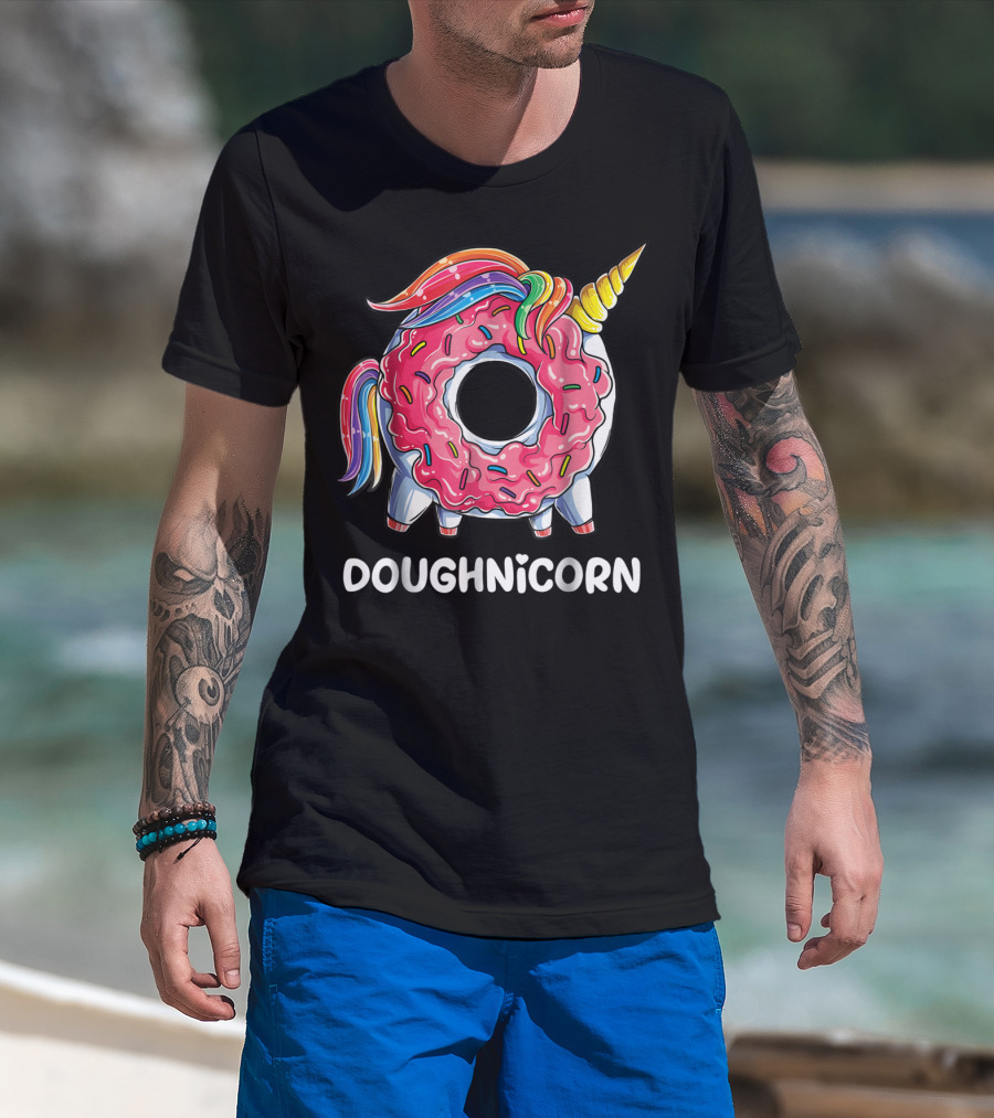 The Doughnicorn Unicorn Donut with Rainbow Sprinkles T-shirt is designed for everyday wear and a consistent fit. Fabric is pre-shrunk ring-spun cotton with durable stitching. See the size chart below for exact measurements.