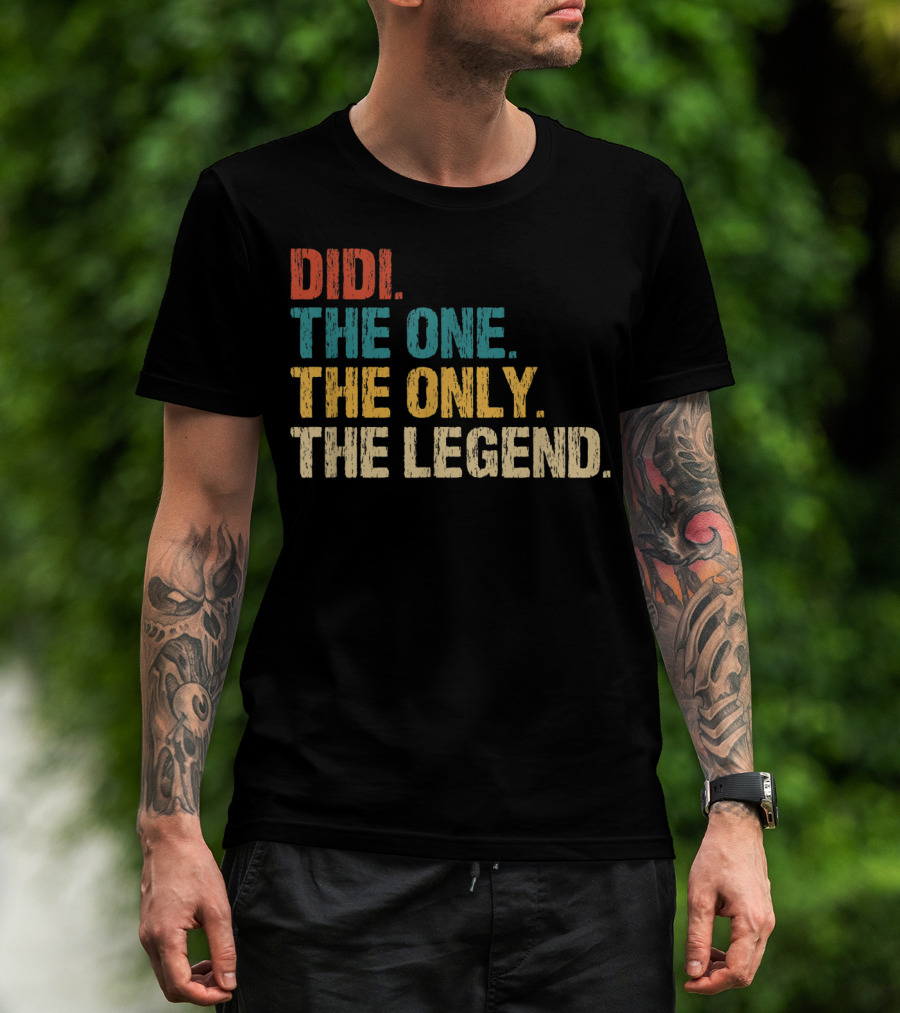 The Didi The One The Only The Legend Text T-shirt is designed for everyday wear and a consistent fit. Fabric is pre-shrunk ring-spun cotton with durable stitching. See the size chart below for exact measurements.