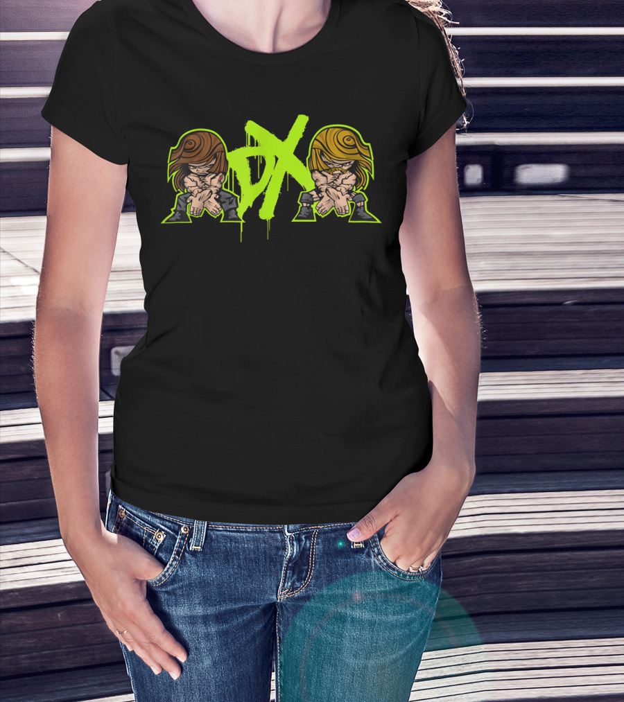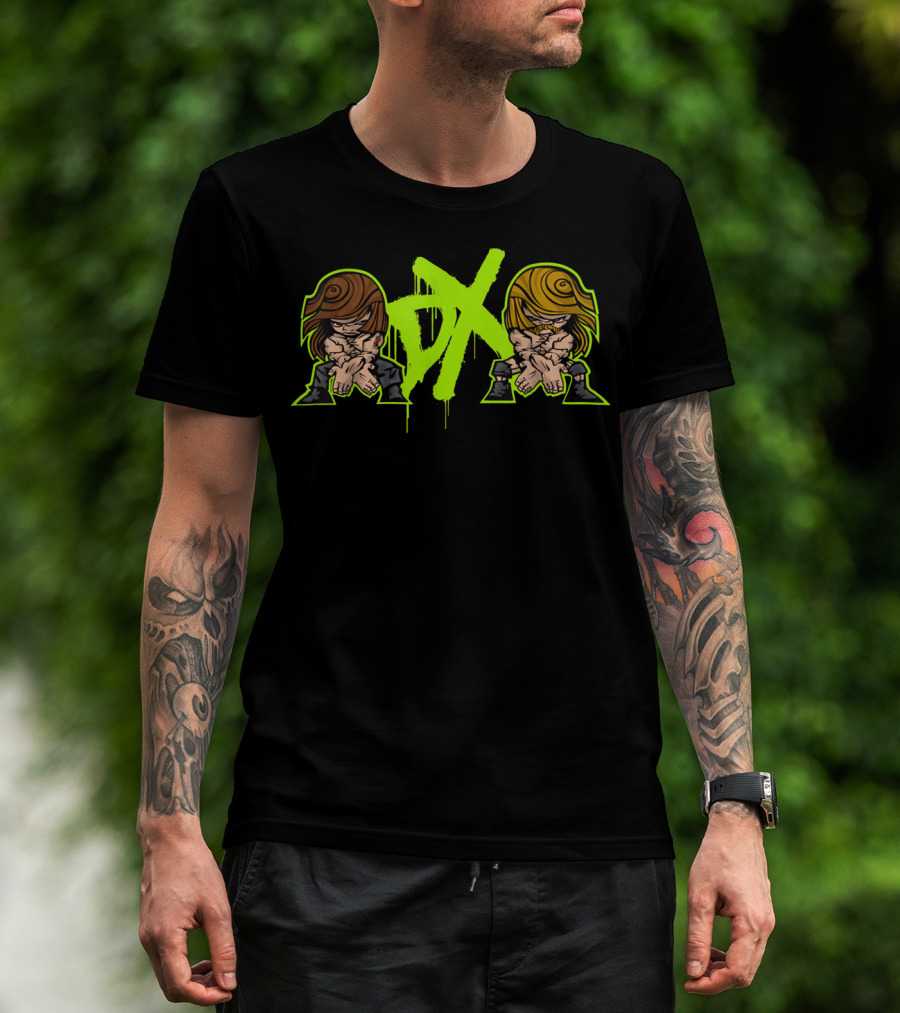 D-Generation X Crossover Cartoon Characters Green And Black T-Shirt