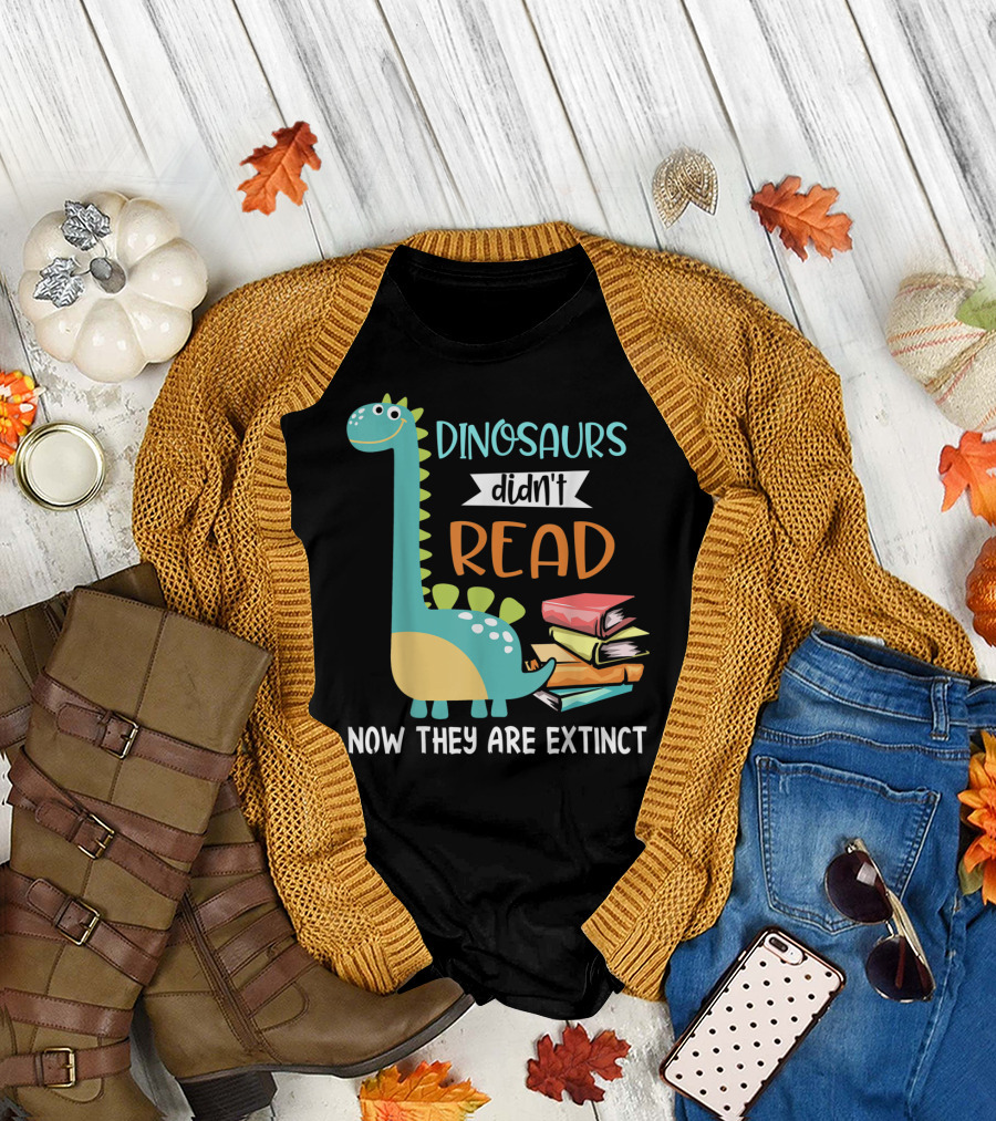 Dinosaurs Didn't Read Now They Are Extinct Books Teacher T-Shirt