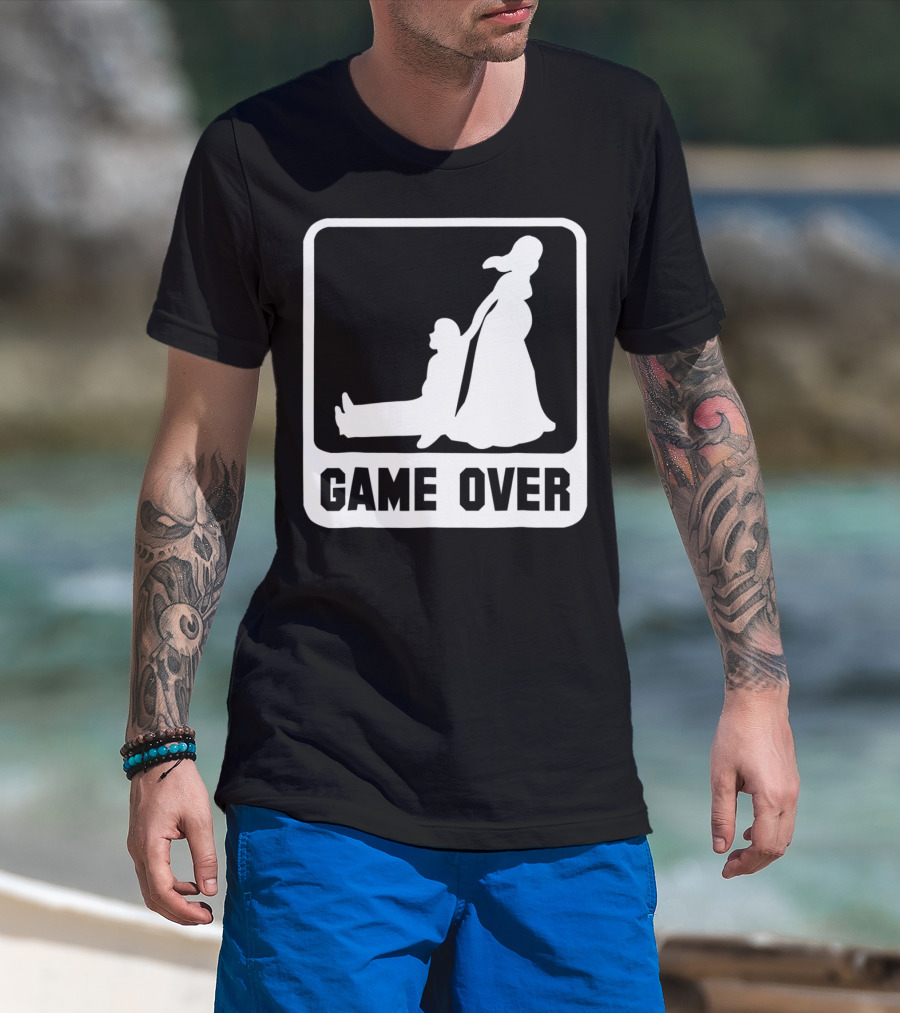 The Game Over Wedding Humor T-shirt is designed for everyday wear and a consistent fit. Fabric is pre-shrunk ring-spun cotton with durable stitching. See the size chart below for exact measurements.