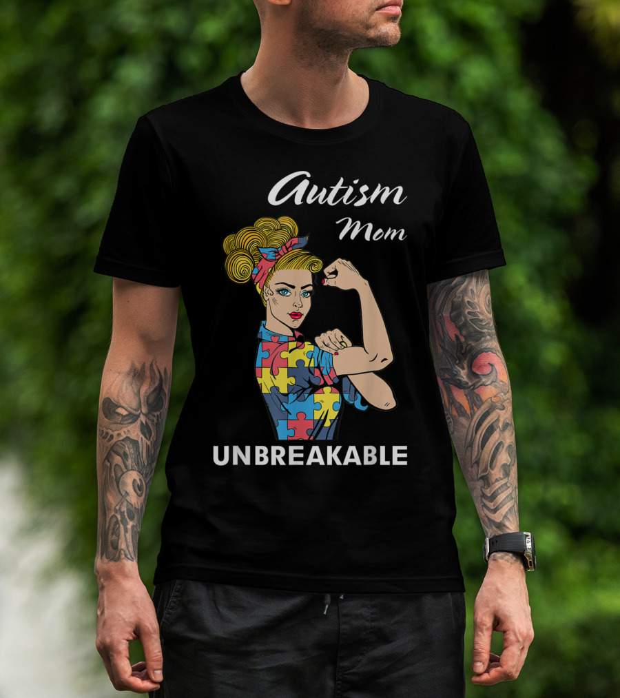 Autism Mom Unbreakable Puzzle Piece Strong Women Empowerment T-Shirt