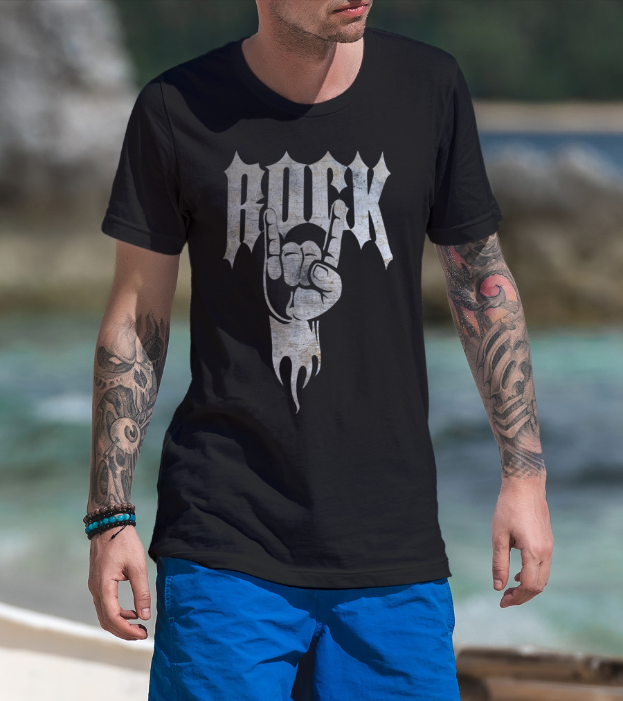 The Distressed Metal Rock Hand Sign 80's T-shirt is designed for everyday wear and a consistent fit. Fabric is pre-shrunk ring-spun cotton with durable stitching. See the size chart below for exact measurements.