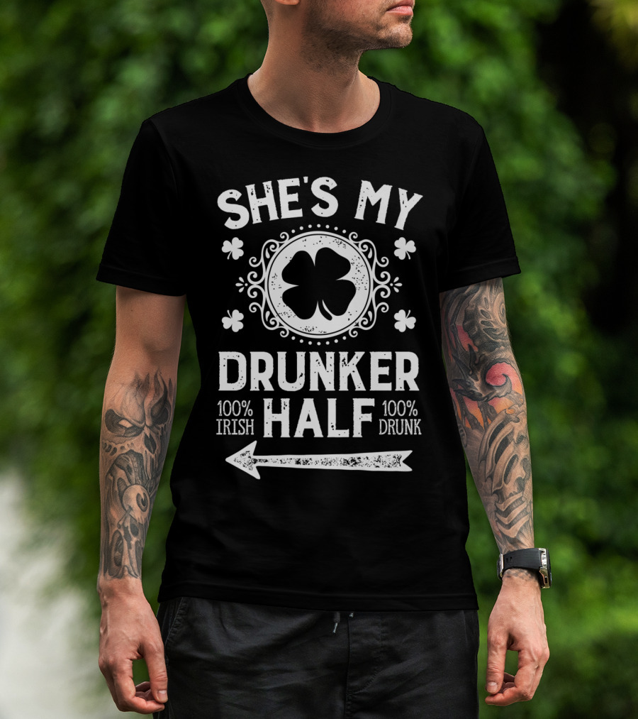 She's My Drunker Half 100% Irish 100% Drunk St Patricks Day Couple T-Shirt
