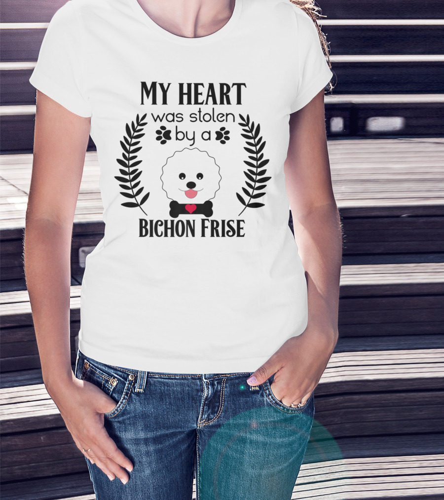 My Heart Was Stolen By A Bichon Frise Puppy Lover Dog Dad Canine Puppies T-Shirt