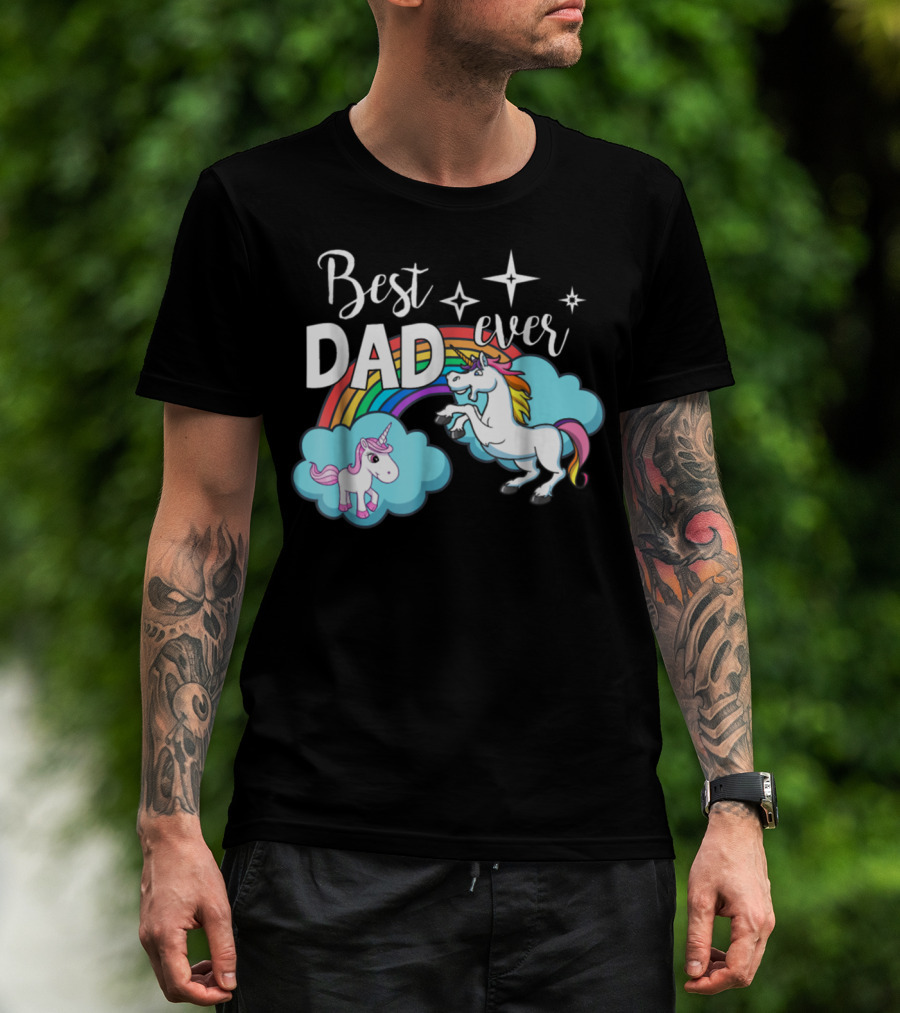 Best Dad Ever Unicorn Rainbow Cloud Stars T-Shirt