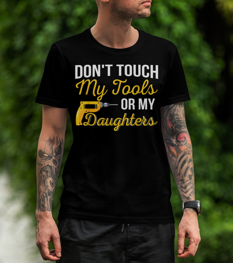 Don't Touch My Tools Or My Daughters Yellow Power Drill T-Shirt