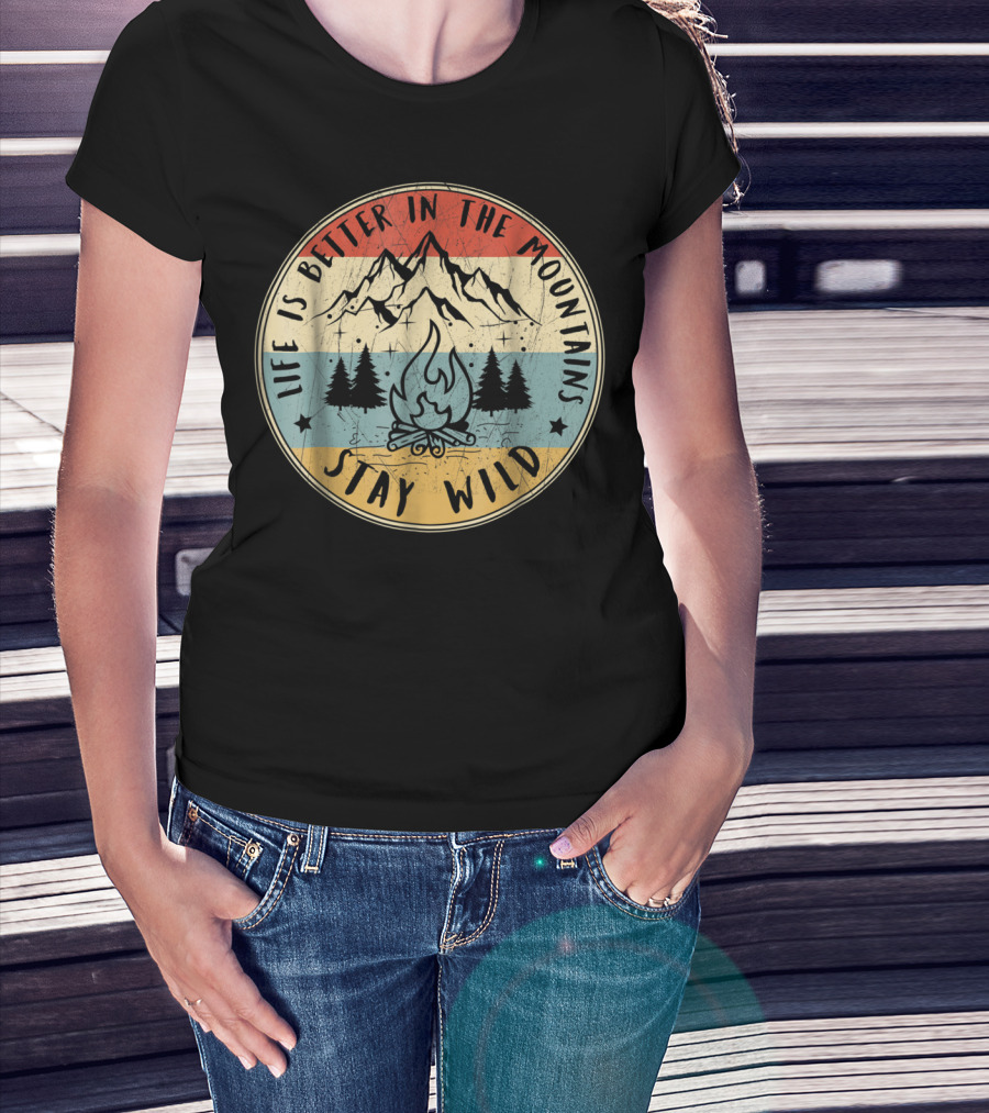 Stay Wild Life Is Better In The Mountains Vintage Campfire T-Shirt
